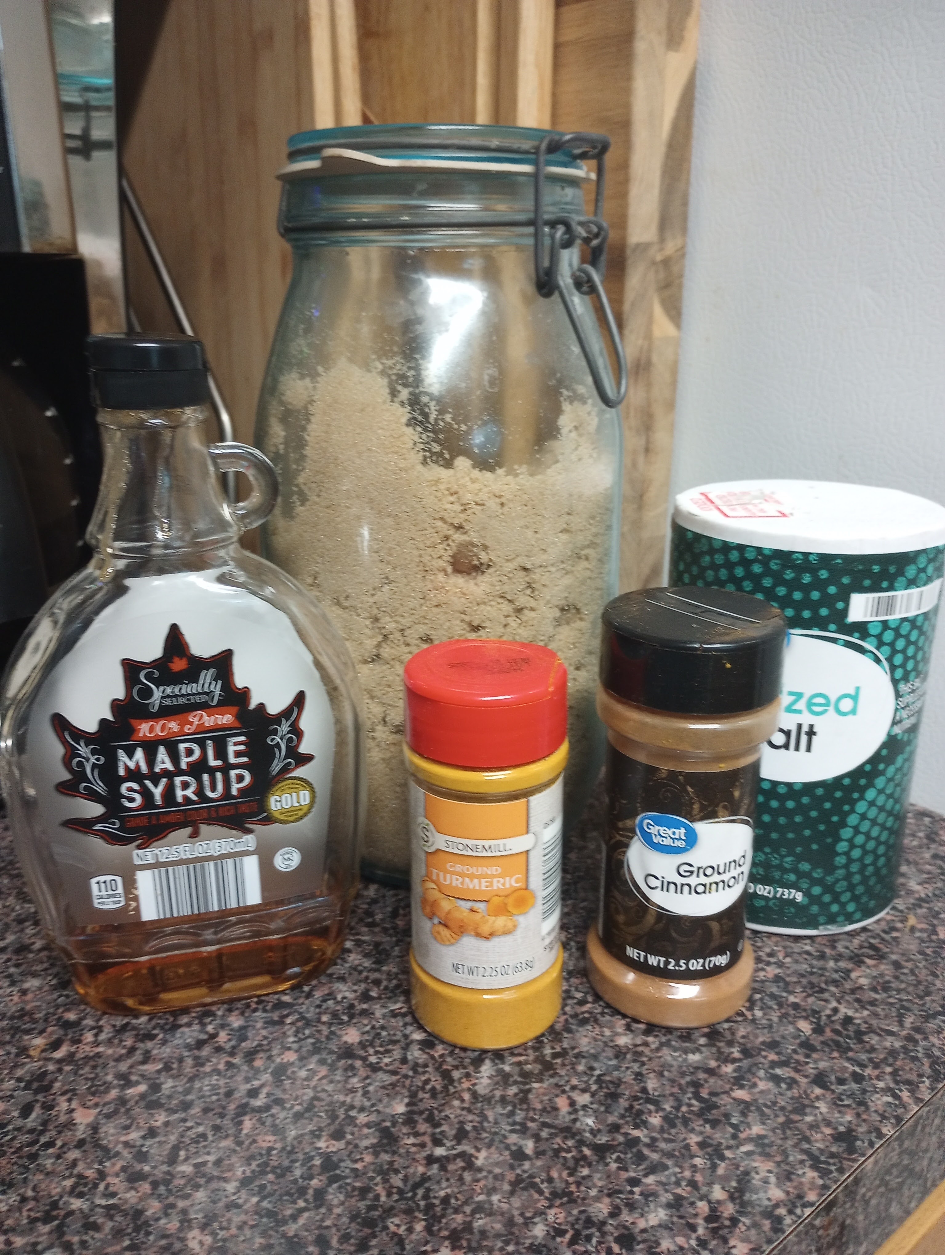i add about 2 tsp of brown sugar, cinnamon, turmeric, a dash of salt and a drizzle of maple syrup. I like a lot of cinnamon and turmeric.