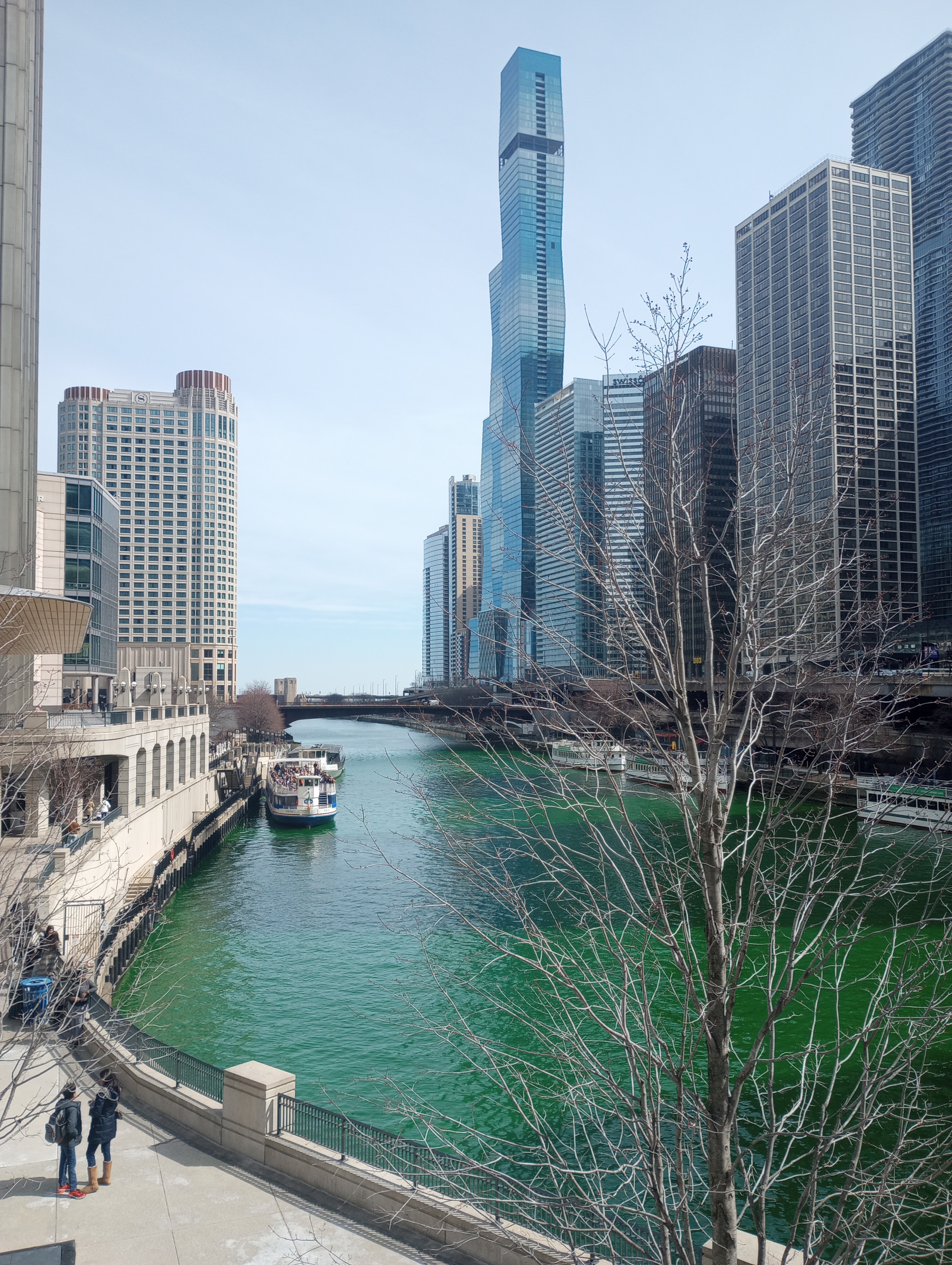 The river was still green from when the city dyed it on Saturday.