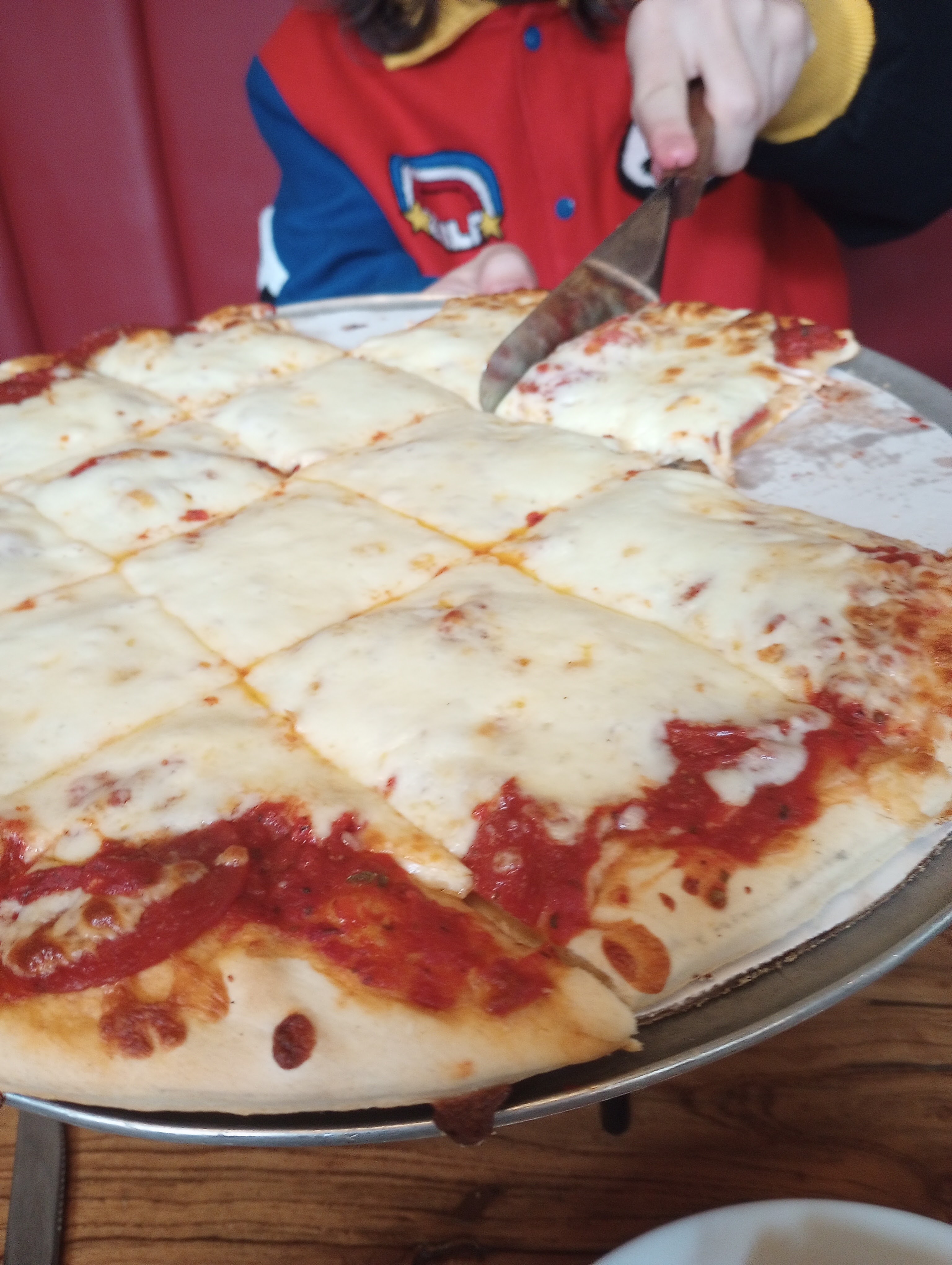 Jackson got a thin crust because he doesn’t like deep dish. We ended up taking leftovers back because one slice will fill you up.