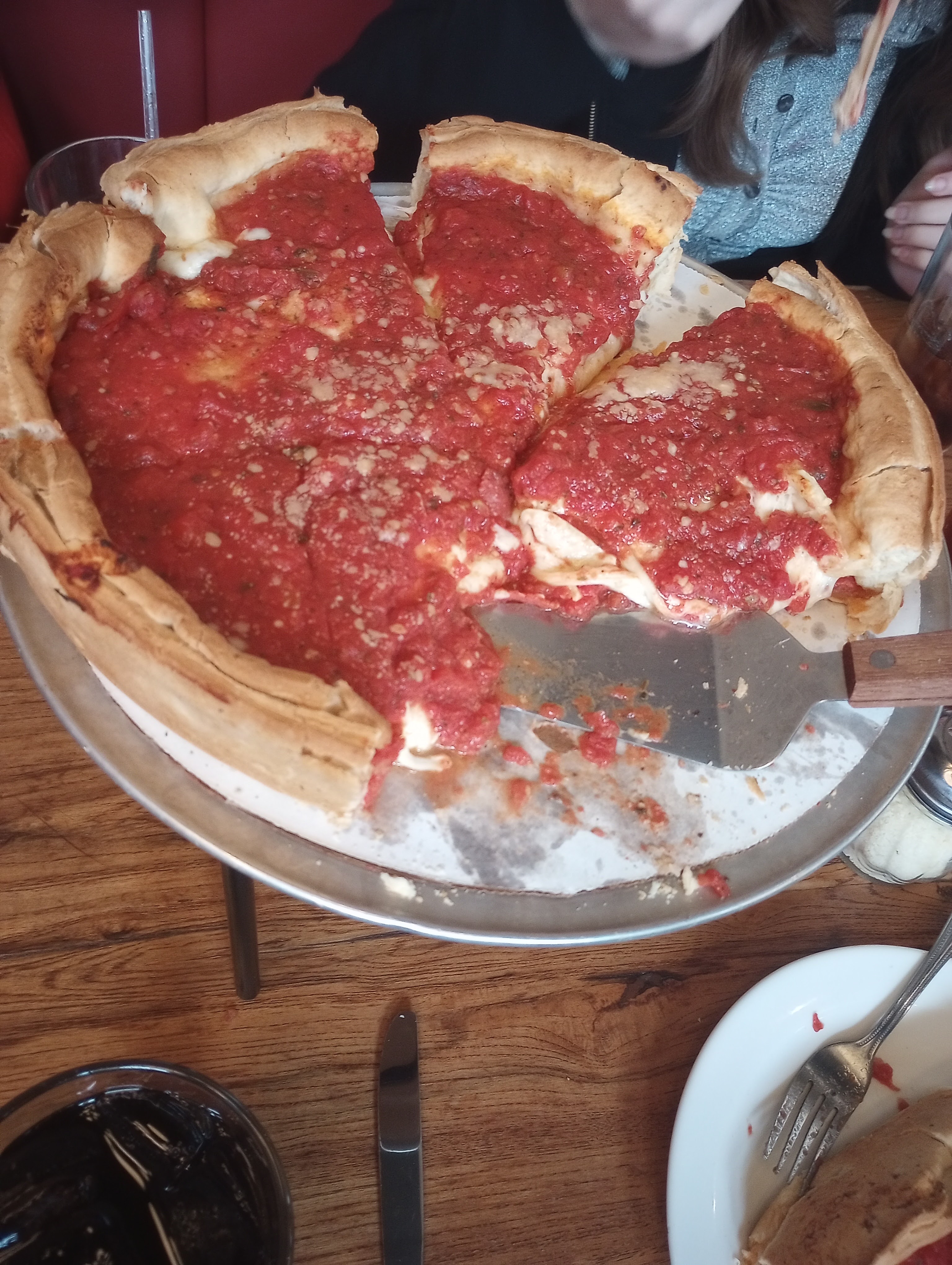 There was about a 20 minute wait, but what you do is put your order in when you get on the wait list so it’s already being made before you’re seated. It takes 45 minutes for a deep dish to bake.
