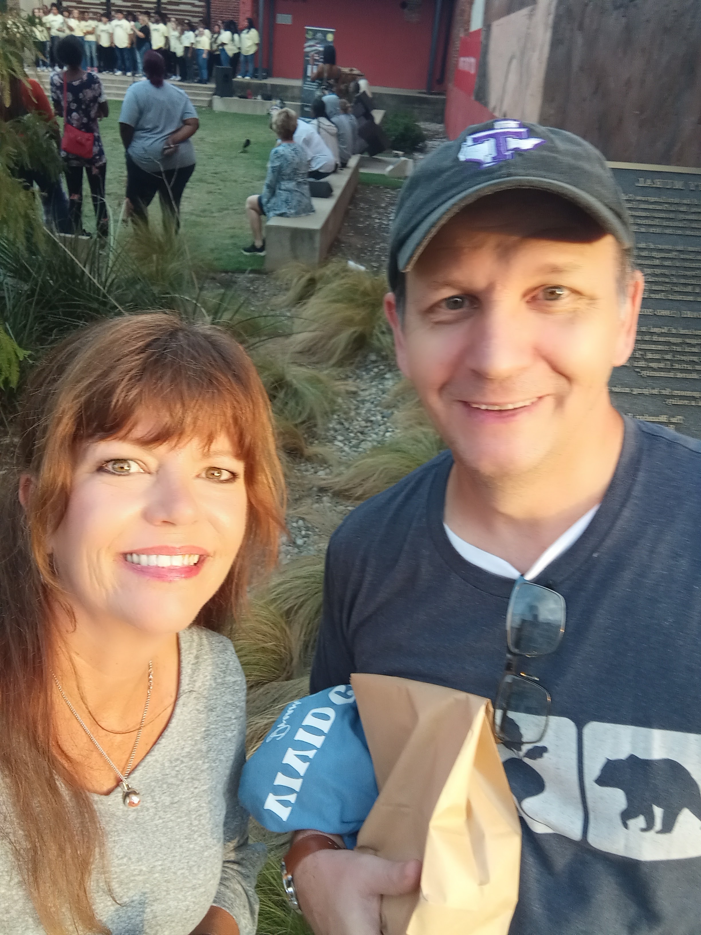 I know I was happy because the air was a crisp 74 degrees and it smelled amazing walking in the forest. Please excuse my no makeup and scraped back hair look. We’re been busy all day taking care of stuff at home. It’s good to get out and breath fresh air a little every day.