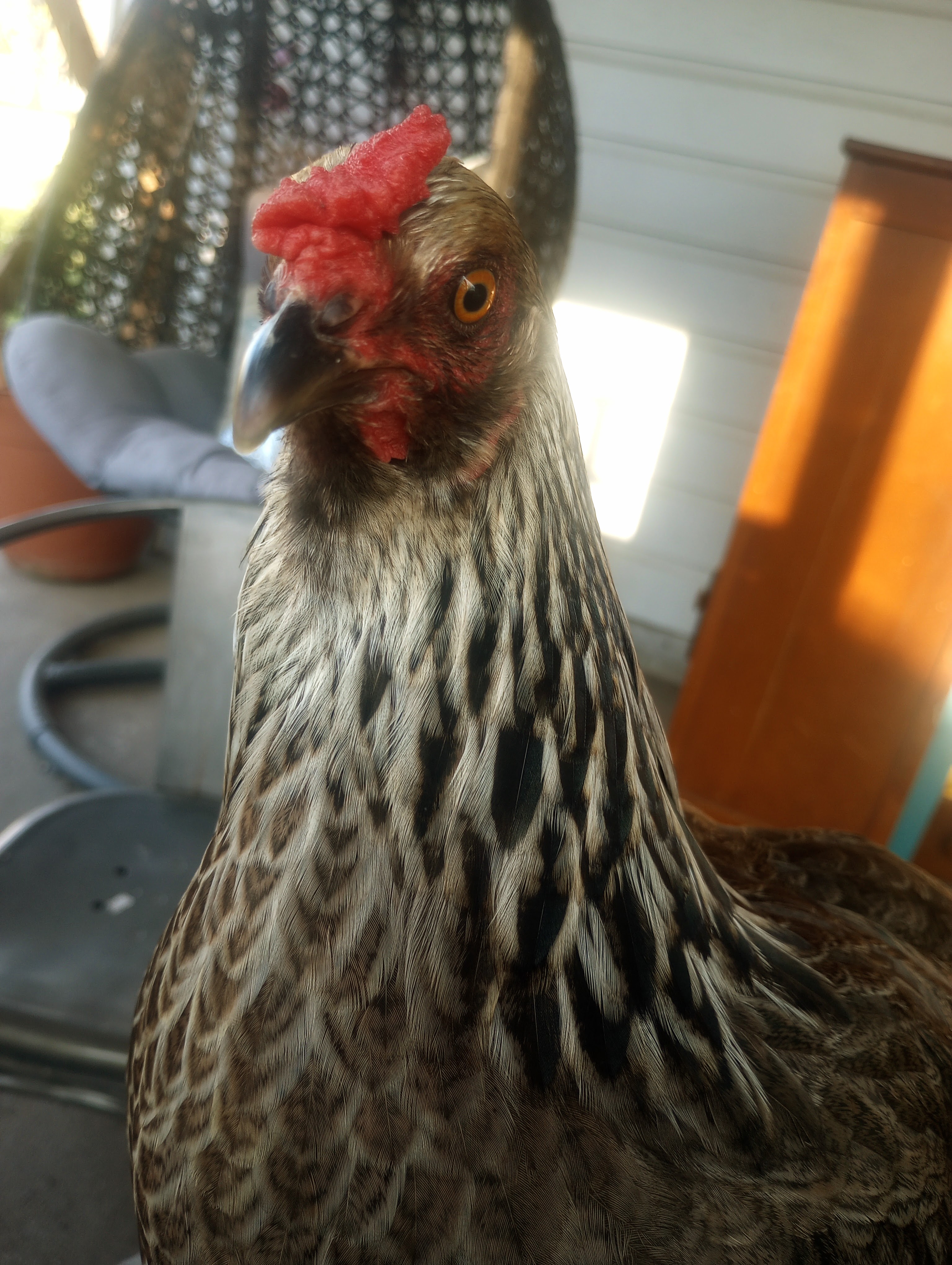 This is Penelope, one of the original hens. She likes to jump on my lap and hang out.