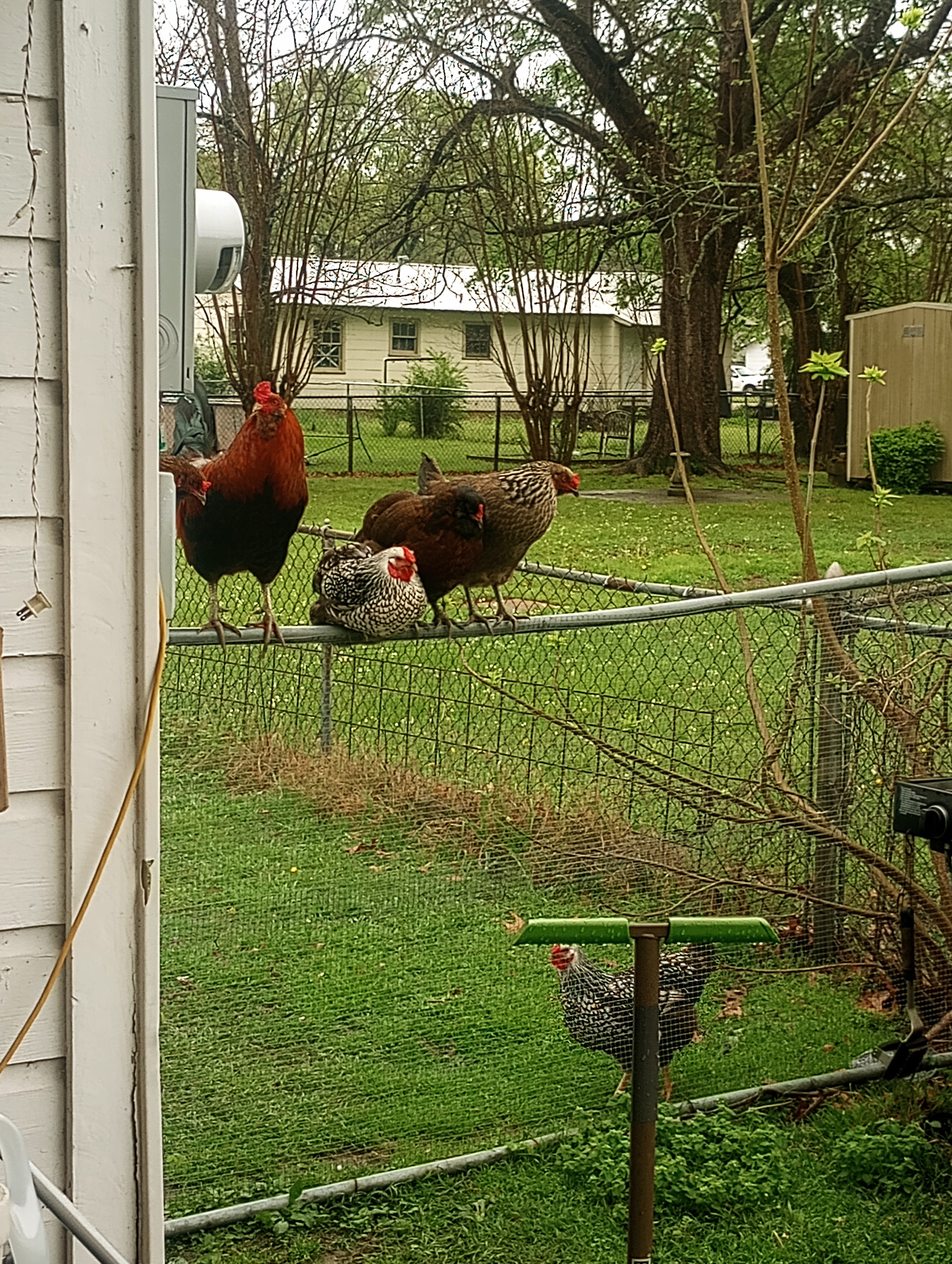 So we gained one pet and lost another, which does not make me sad. The one that is now gone is the rooster. After 2 years I can now walk in my backyard without carrying a weapon. He had never tried to get out of the backyard before and then realized he could get on to gate and jump off.