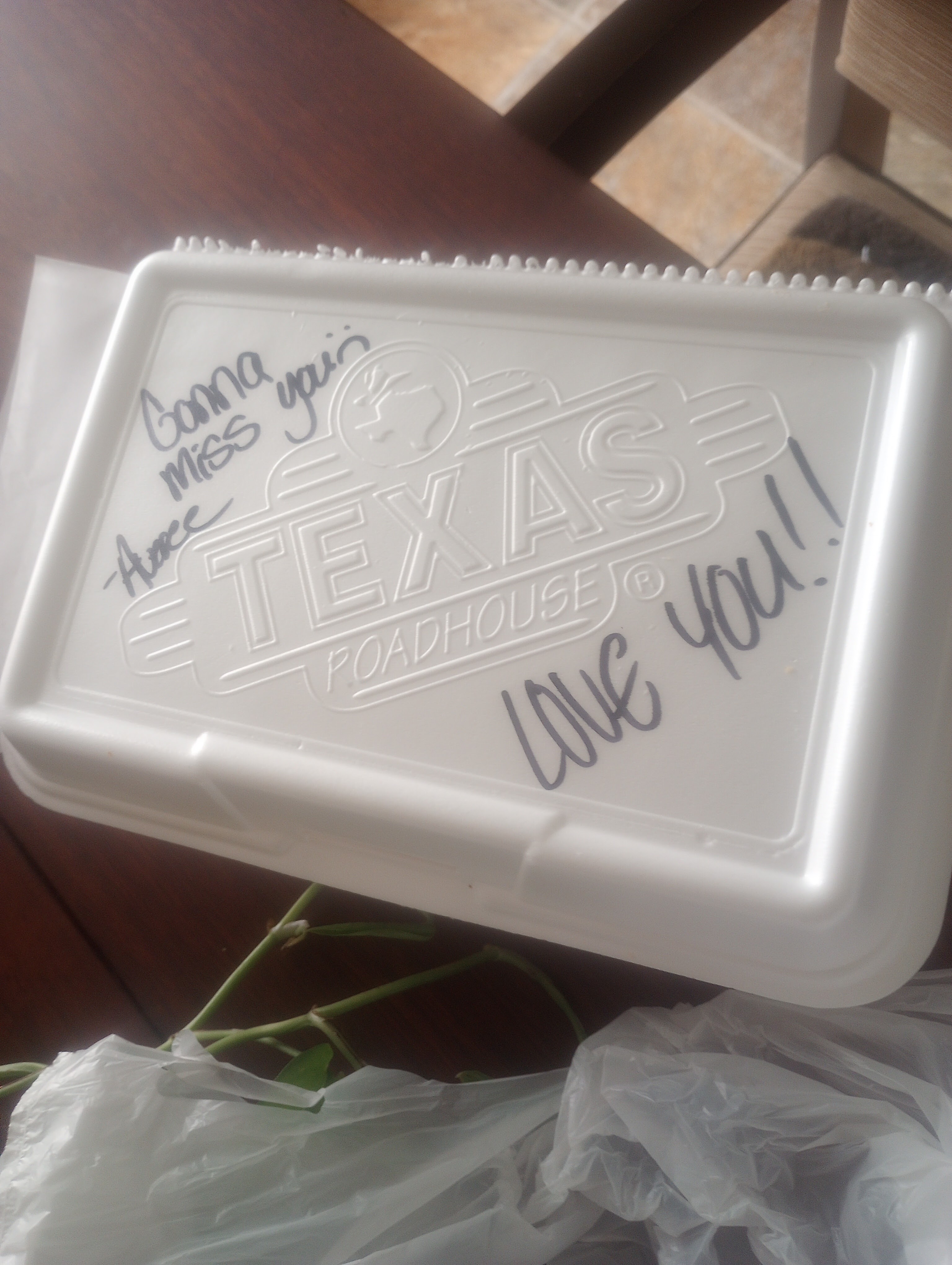 Her favorite dessert is cheesecake so they gave her a free slice as a going away gift.