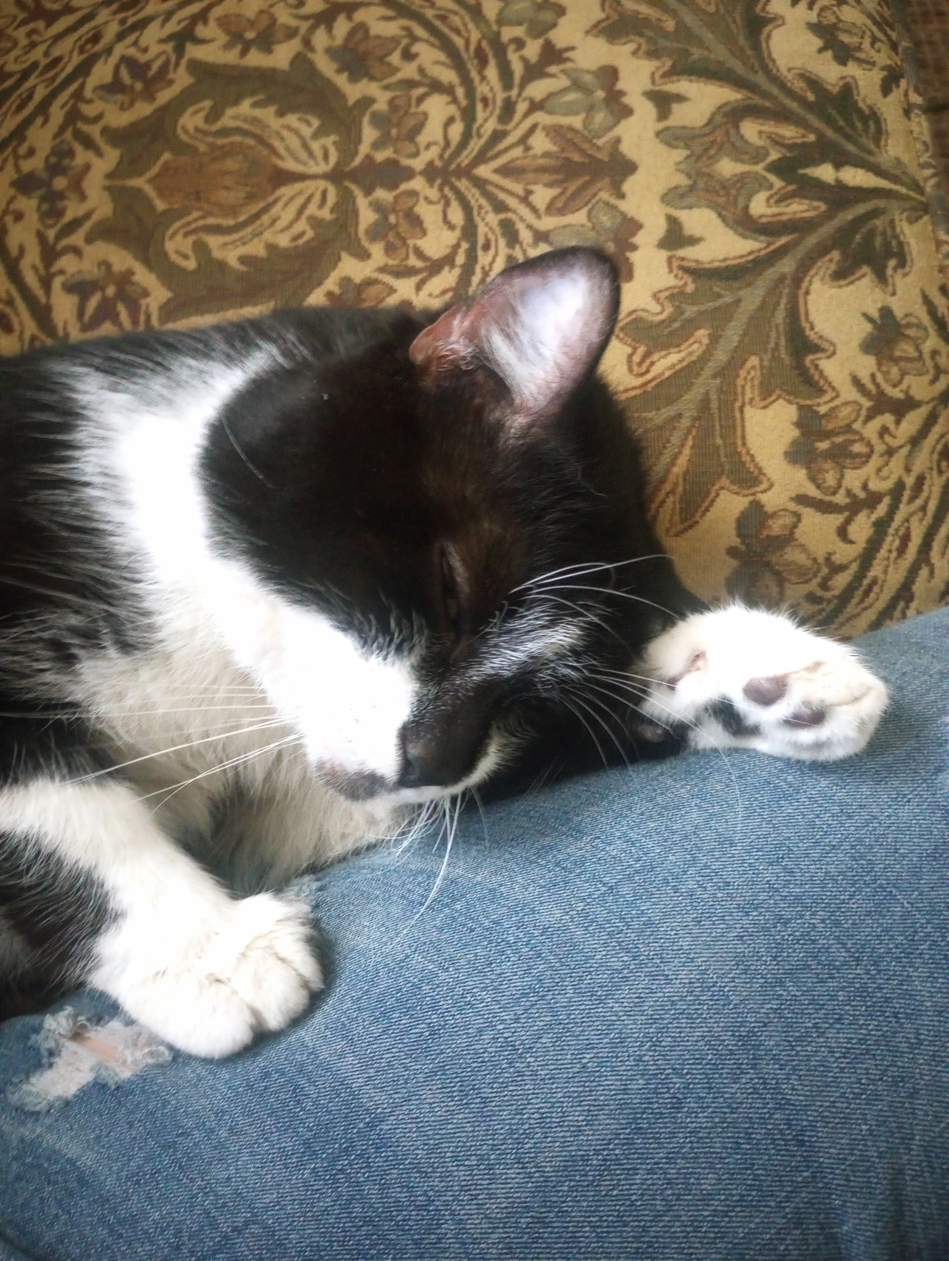 The cats are afraid of the chickens so I’ve been giving the cats catnip to calm them down. Milo was out. I don’t know if you can tell, but his front legs are up in the air.