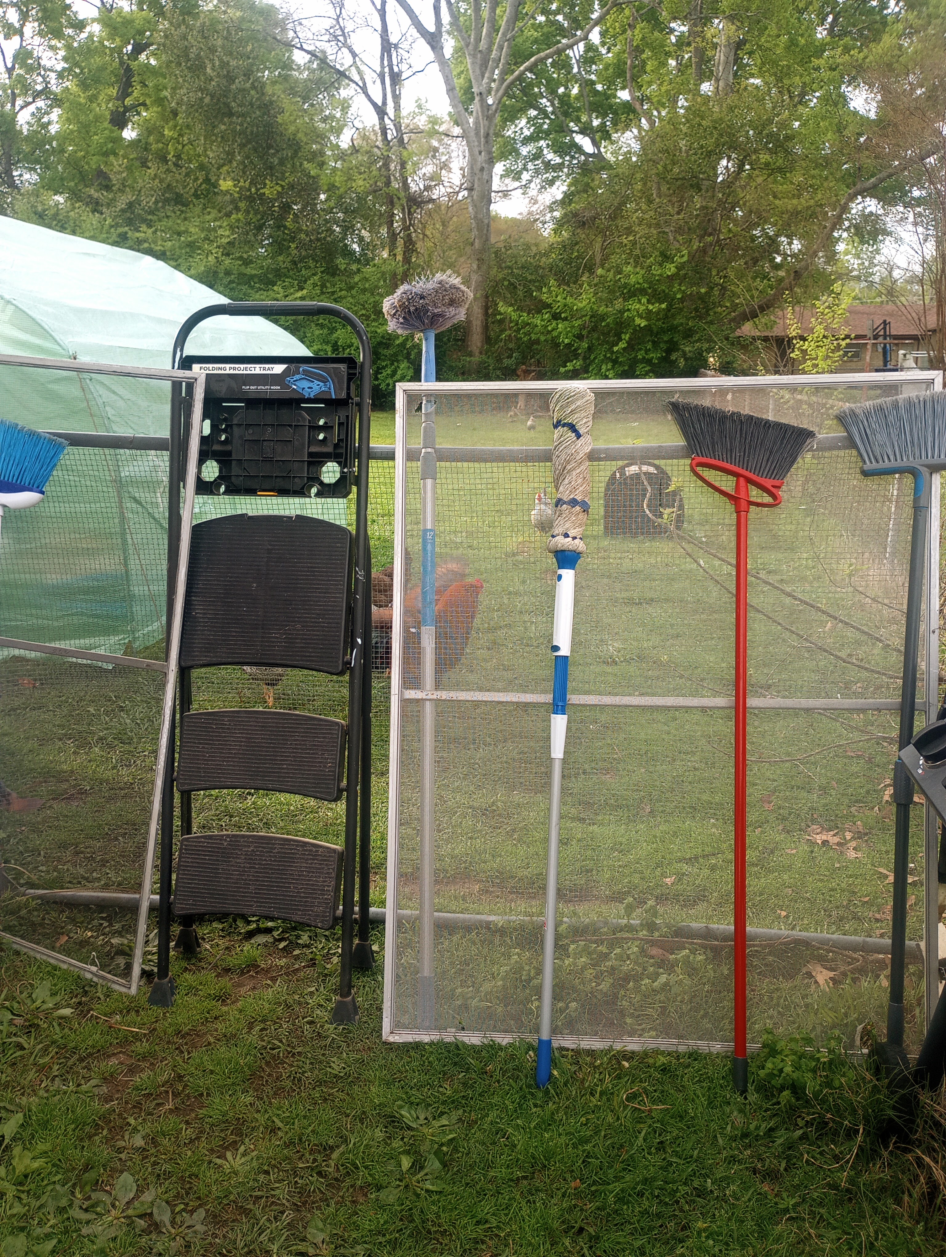 Donny spent most of the morning putting chicken wire up to keep them in. A little chicken prison.