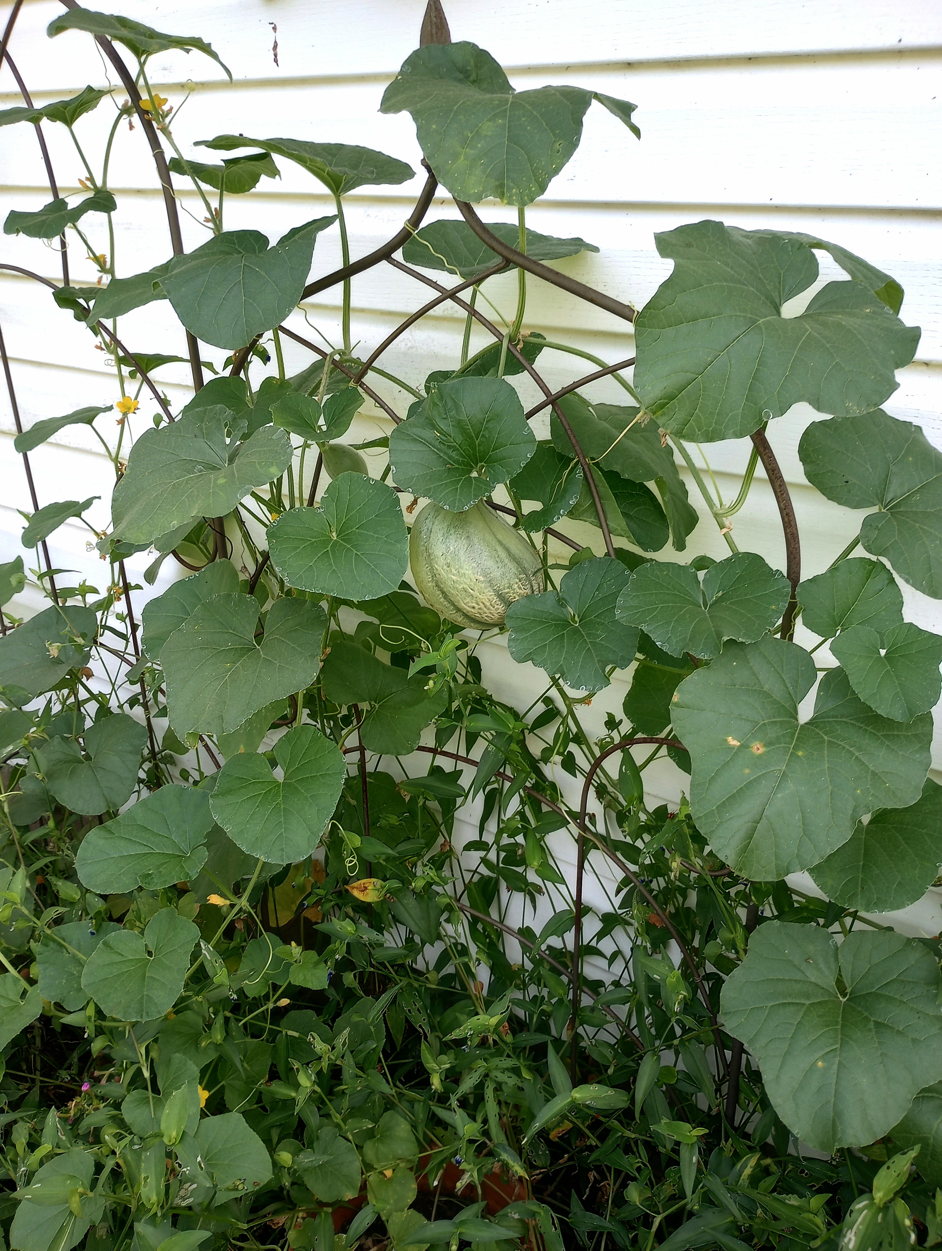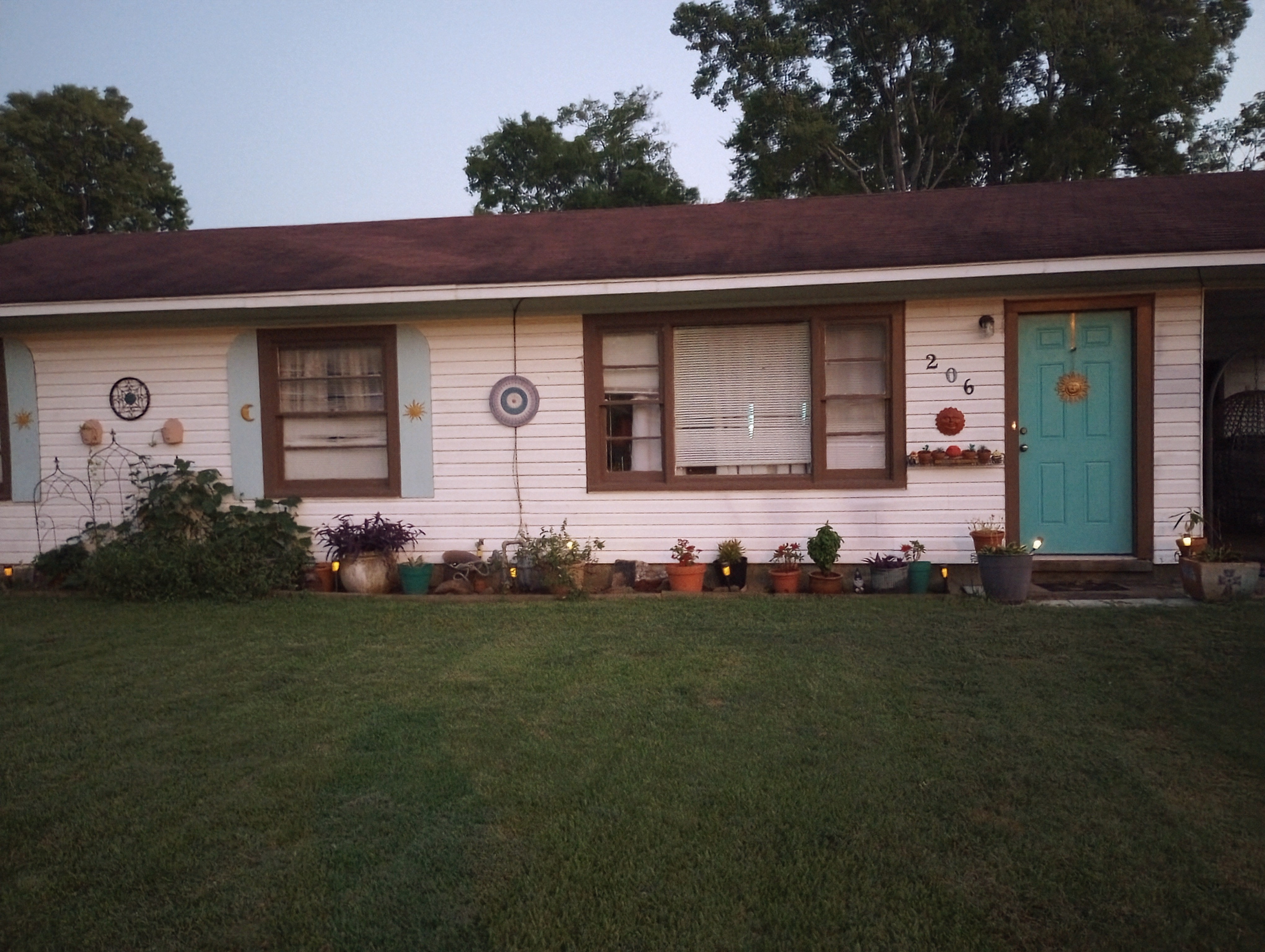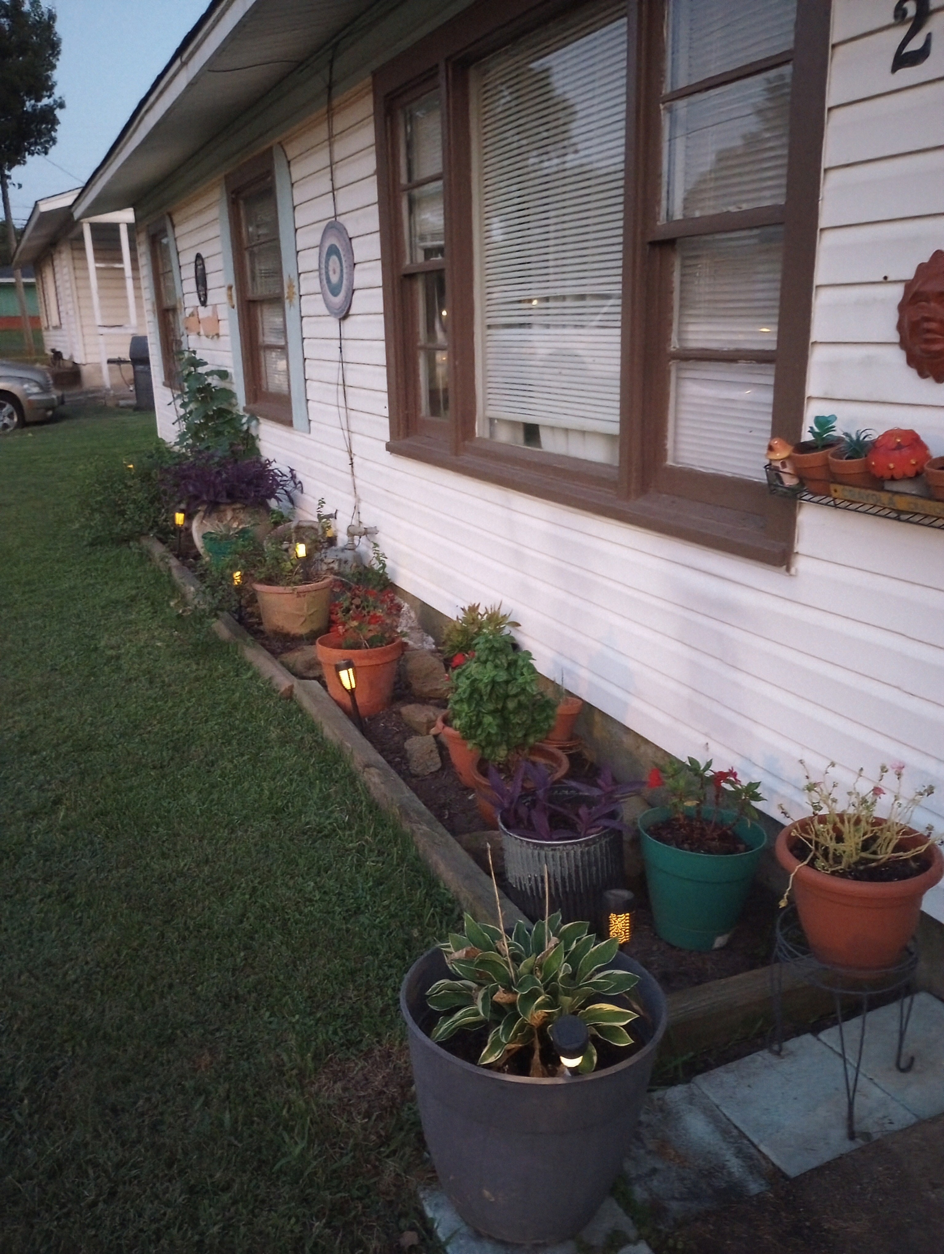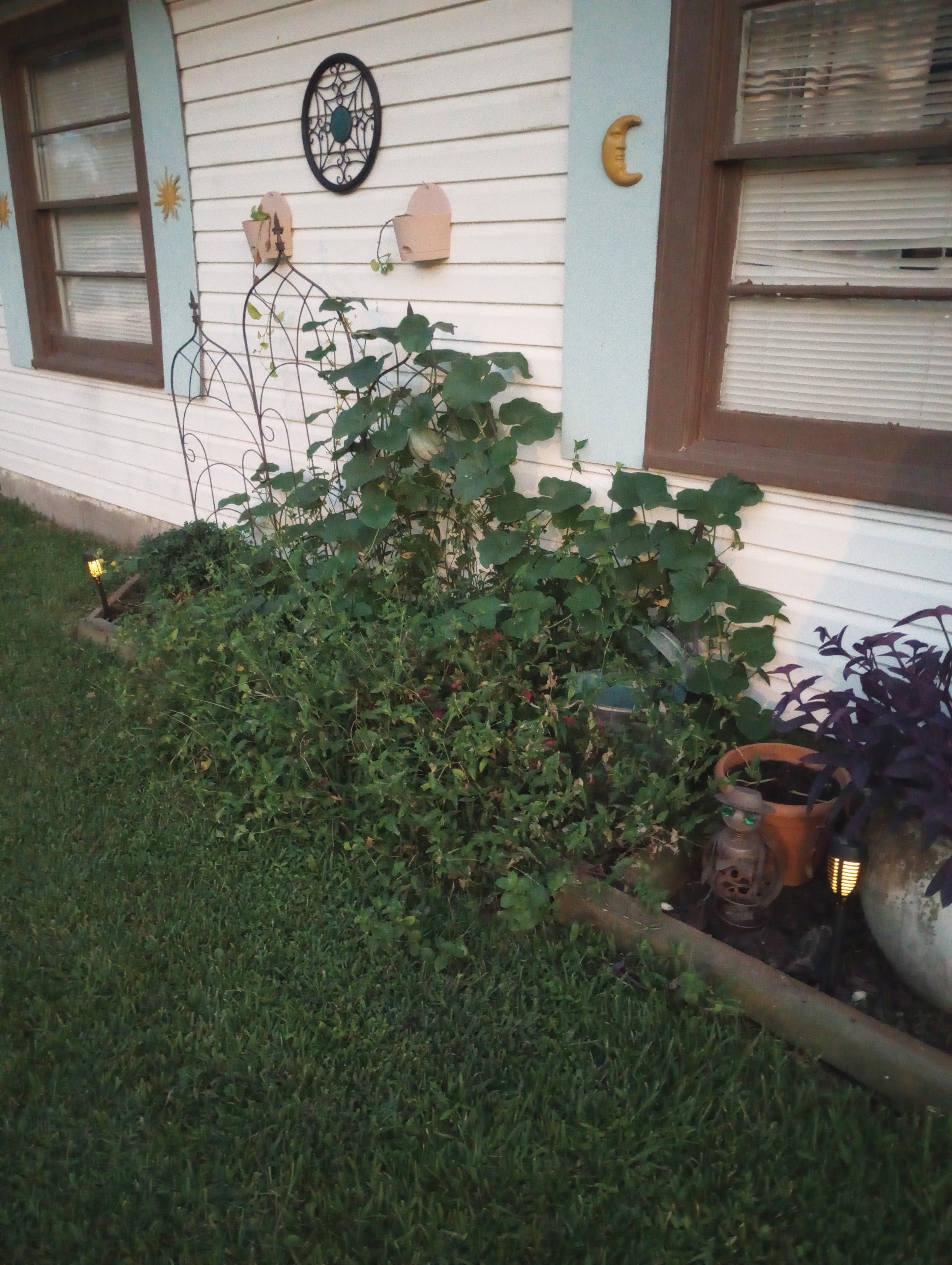Speaking of little things, Donny and I were in Big Lots and found that all of their summer merchandise is 50% off. We found some solar lights to hang from the jasmine trellis. Will they stay there? Who knows, but for right now I really like the little bit of extra light they give to our side yard.