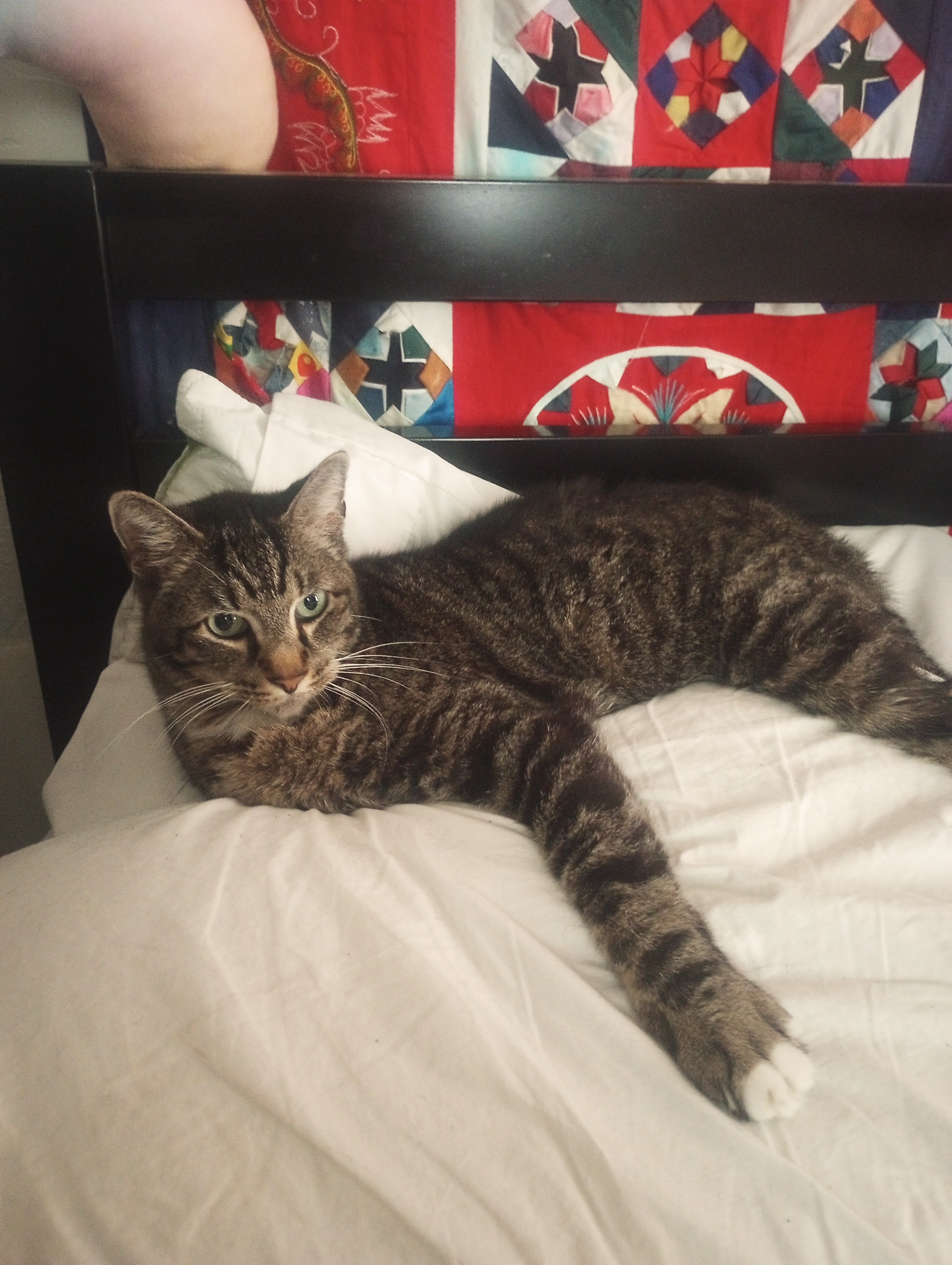 Tommy was the sweetest cat ever. He lost his leg 5 years ago when he got it caught in a louvered closet door (at least that is what we think happened since we were all asleep). During the flood when we were stuck on our roof, he fell off the roof and Donny had to wade through 4 feet of water to rescue him. He never hissed, never tried to fight other cats. He loved our dogs. His favorite thing was to climb up in my lap and be held like a baby. I will miss him so much. He was just a kind old soul. I hope he found Bailey in Heaven and they are playing chase.