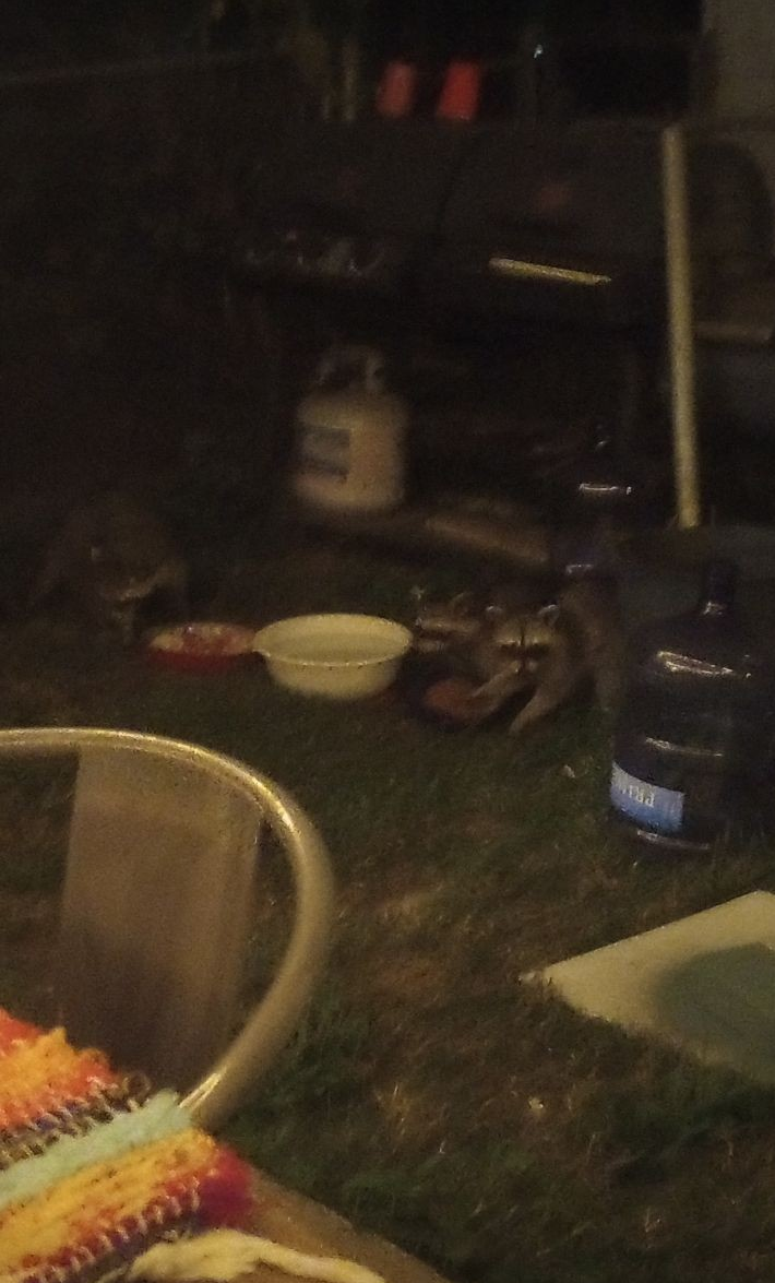 Guess what? We not only have two raccoons, but THREE now. I guess word gets around.
