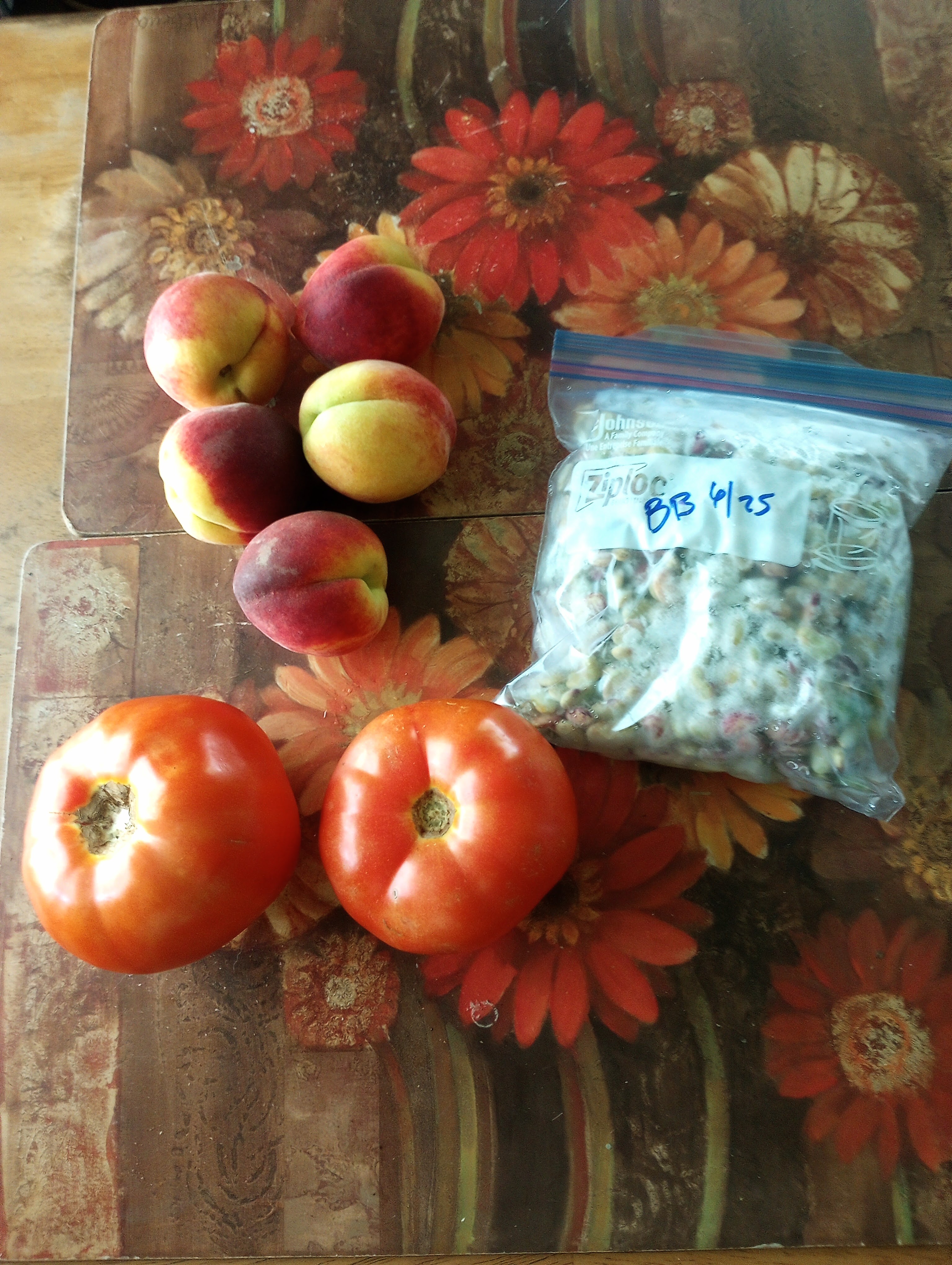 5 peaches, 2 tomatoes and a bag of fresh butter beans. That’s it. I will say that everything was delicious.