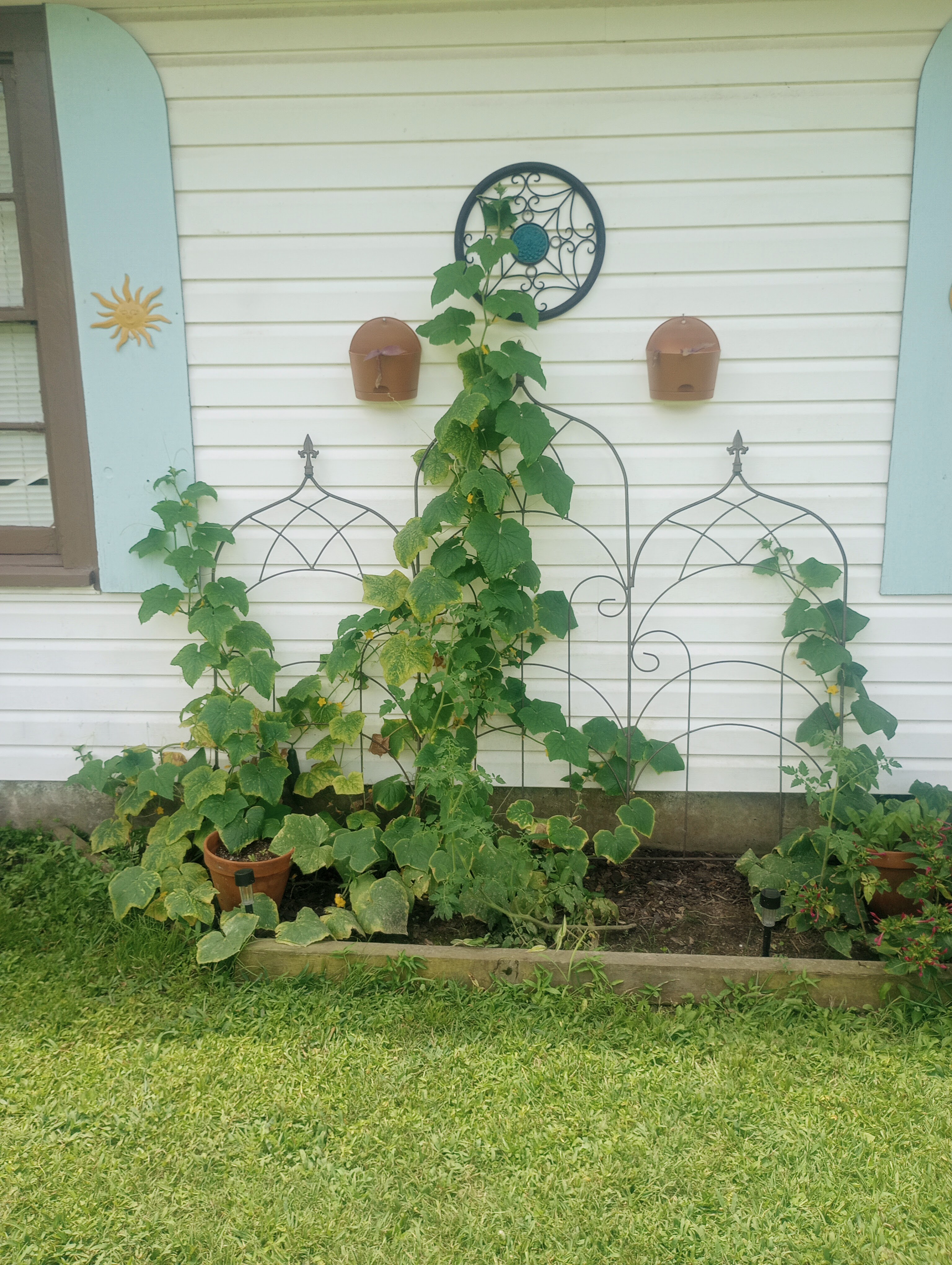 We are finally getting cucumbers. The ones I have bought from Aldi have all been so bitter. I’m happy to say that these are so good and not bitter at all. Last night I made a salad with cucumbers, tomato and red onion. Delicious.