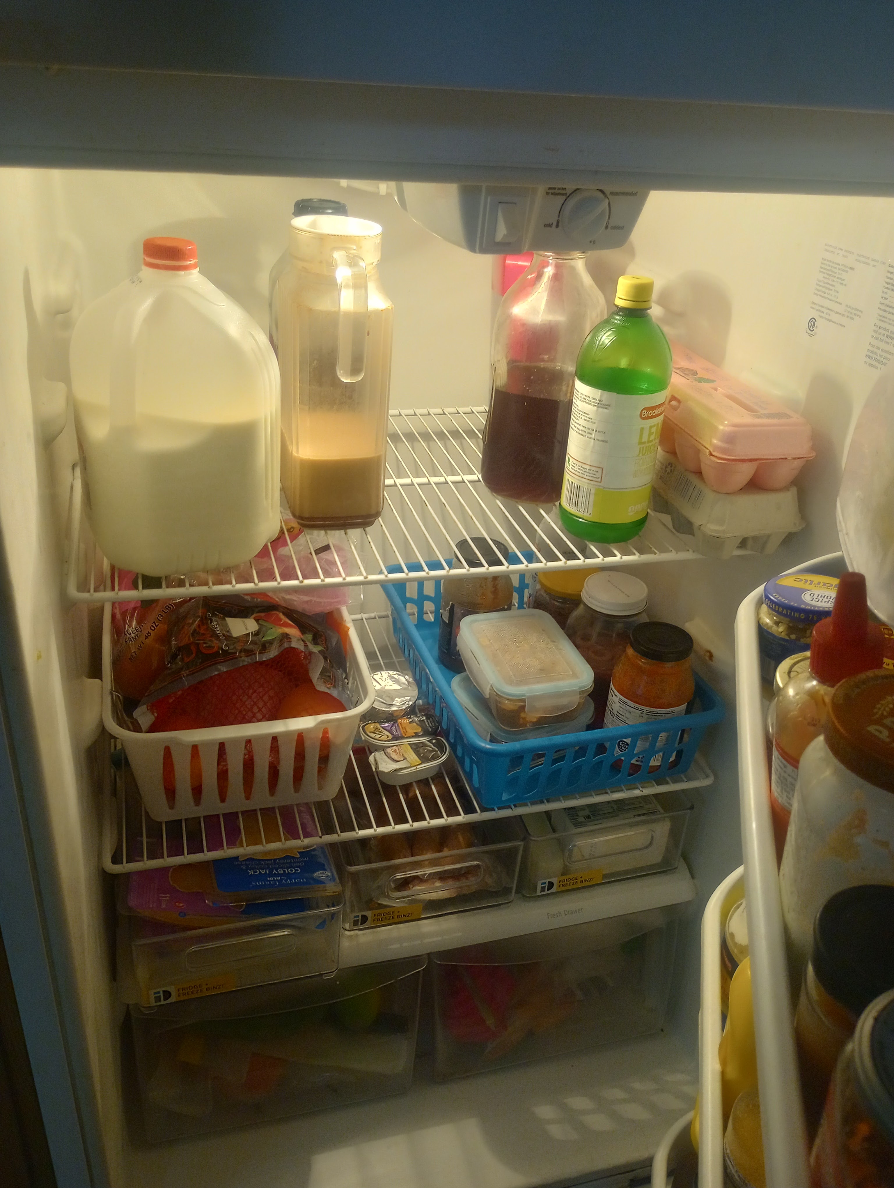 I did have to clean out the Jenga fridge because it was getting a bit frightful when I tried to find something particular or even get something out.