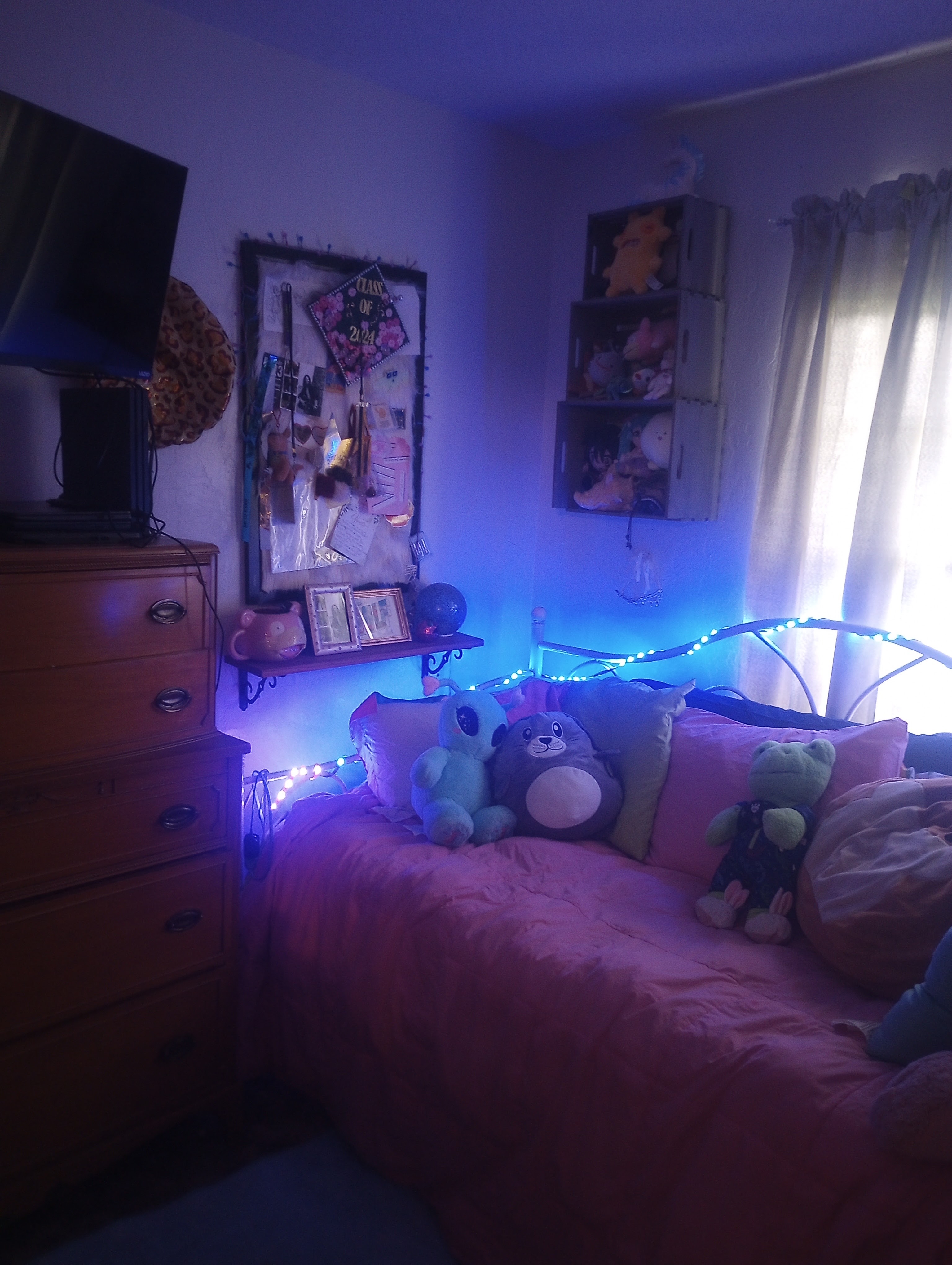 She has the smallest bedroom but she loves it because she is the queen of cozy.