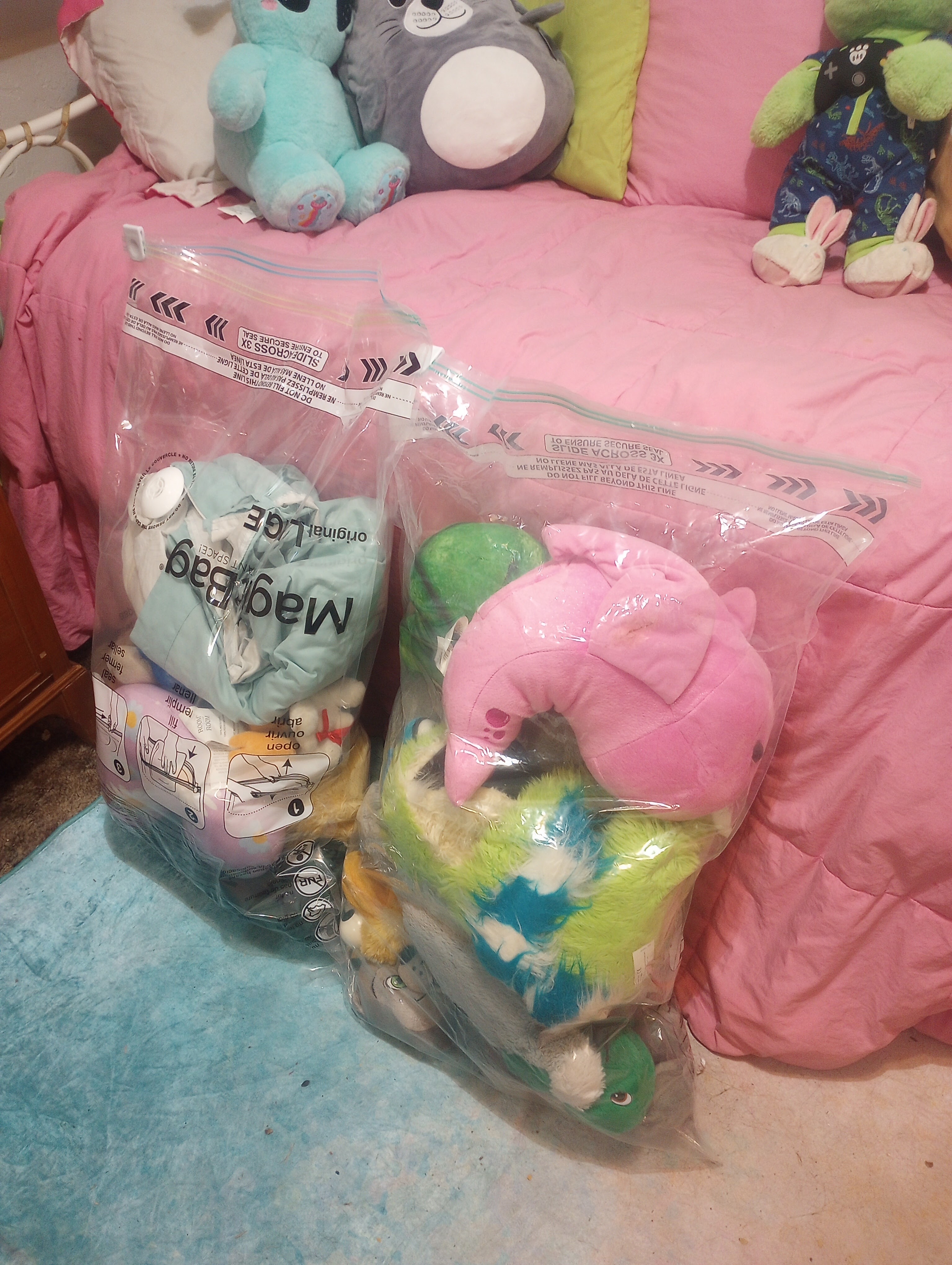 She had way too many stuffies so I bagged the older ones up in the sucker bags.