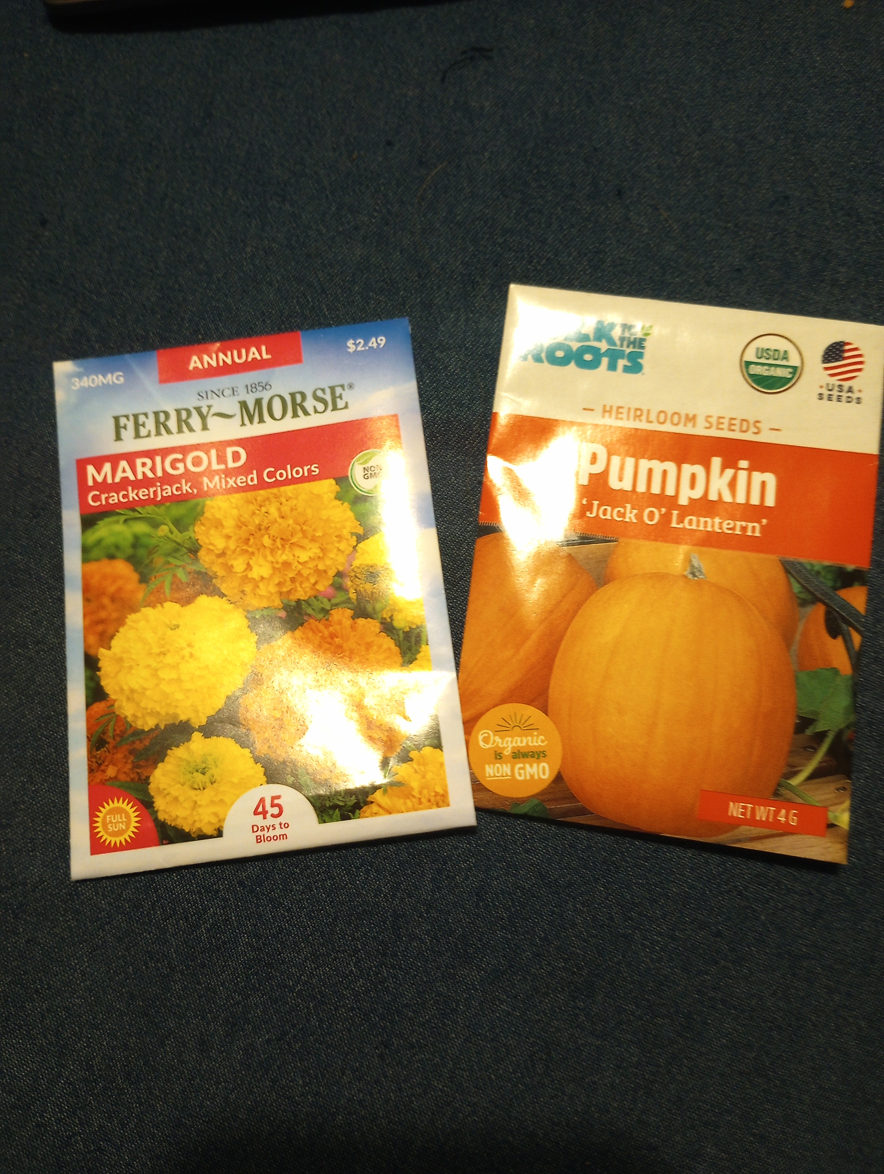 I went ahead and picked up some marigold seeds since they are so good for keeping pests away. I read up how how to prep the pumpkin seeds for planting. I guess you are supposed to file the edges first with sandpaper or a nail file.