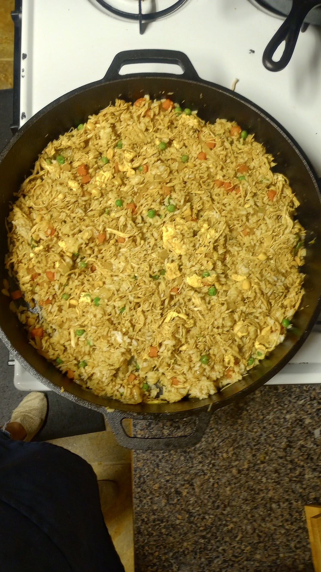 Chicken Fried Rice is so easy and I needed easy after mowing today. My legs are so sore and I’m ready for bed.