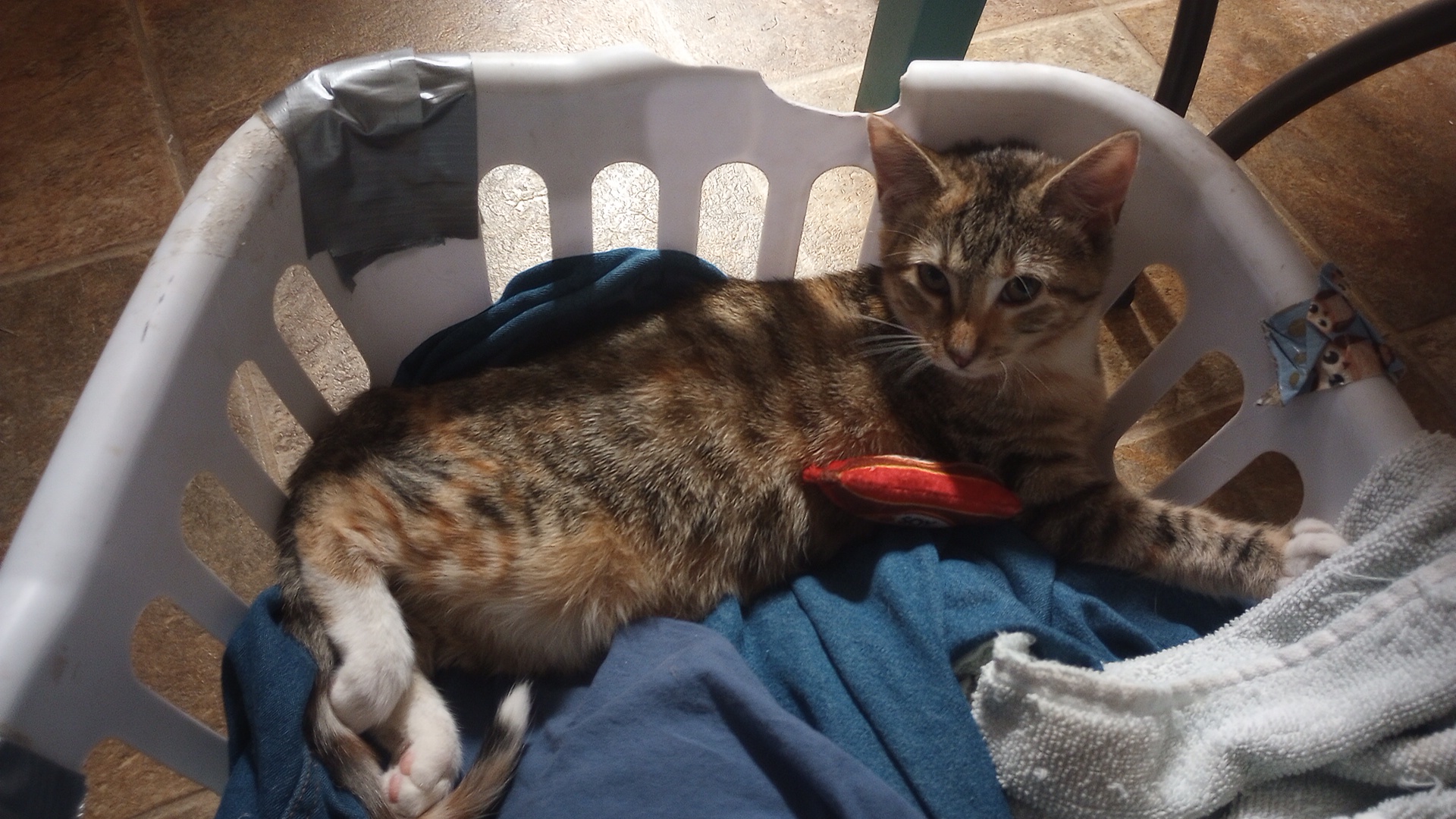 Baby Ruth is never far from her favorite toy – her stuffed soy sauce packet. We’ll ask her where her soy sauce is and she’ll go get it. She such a funny little kitten.