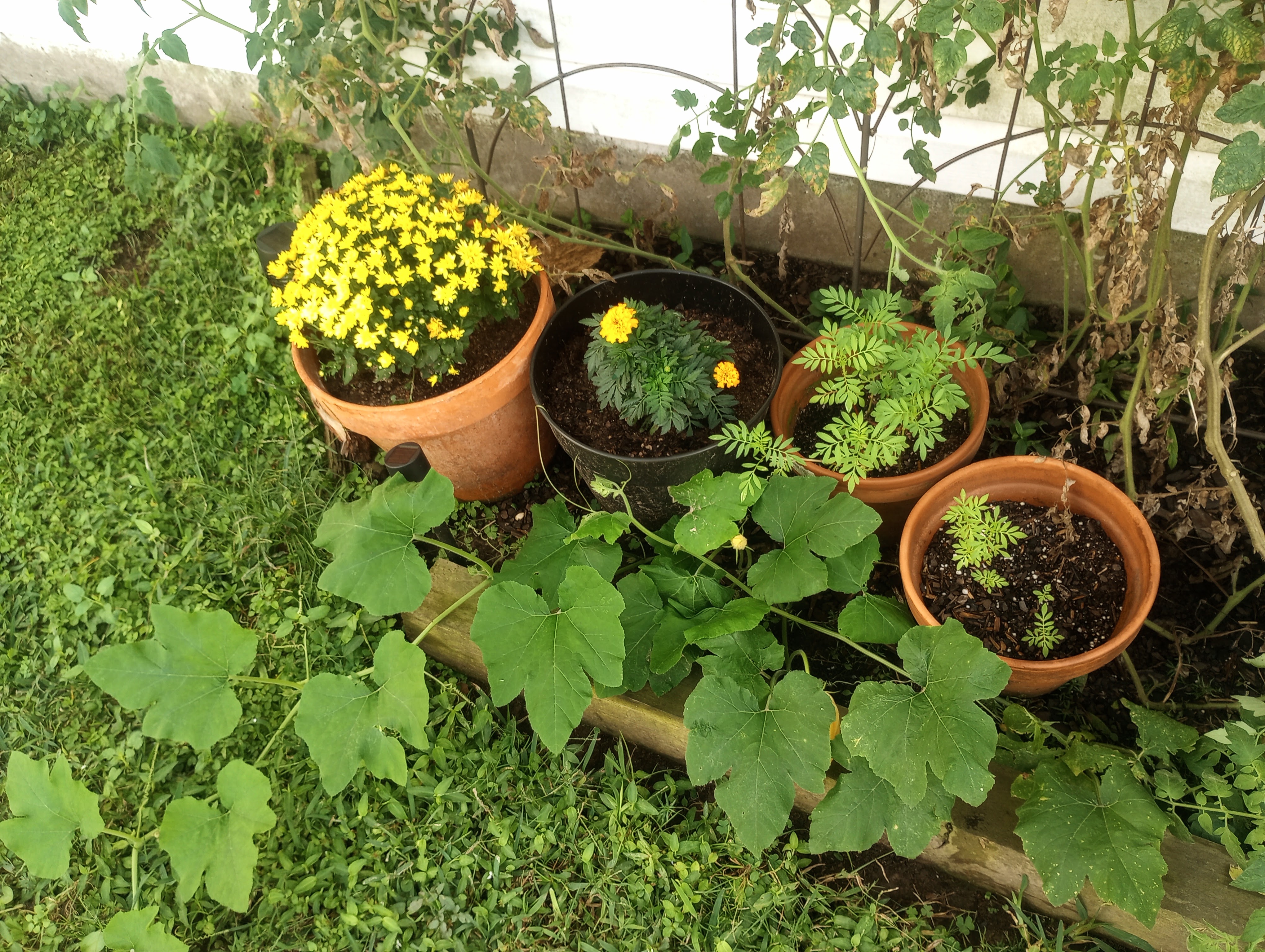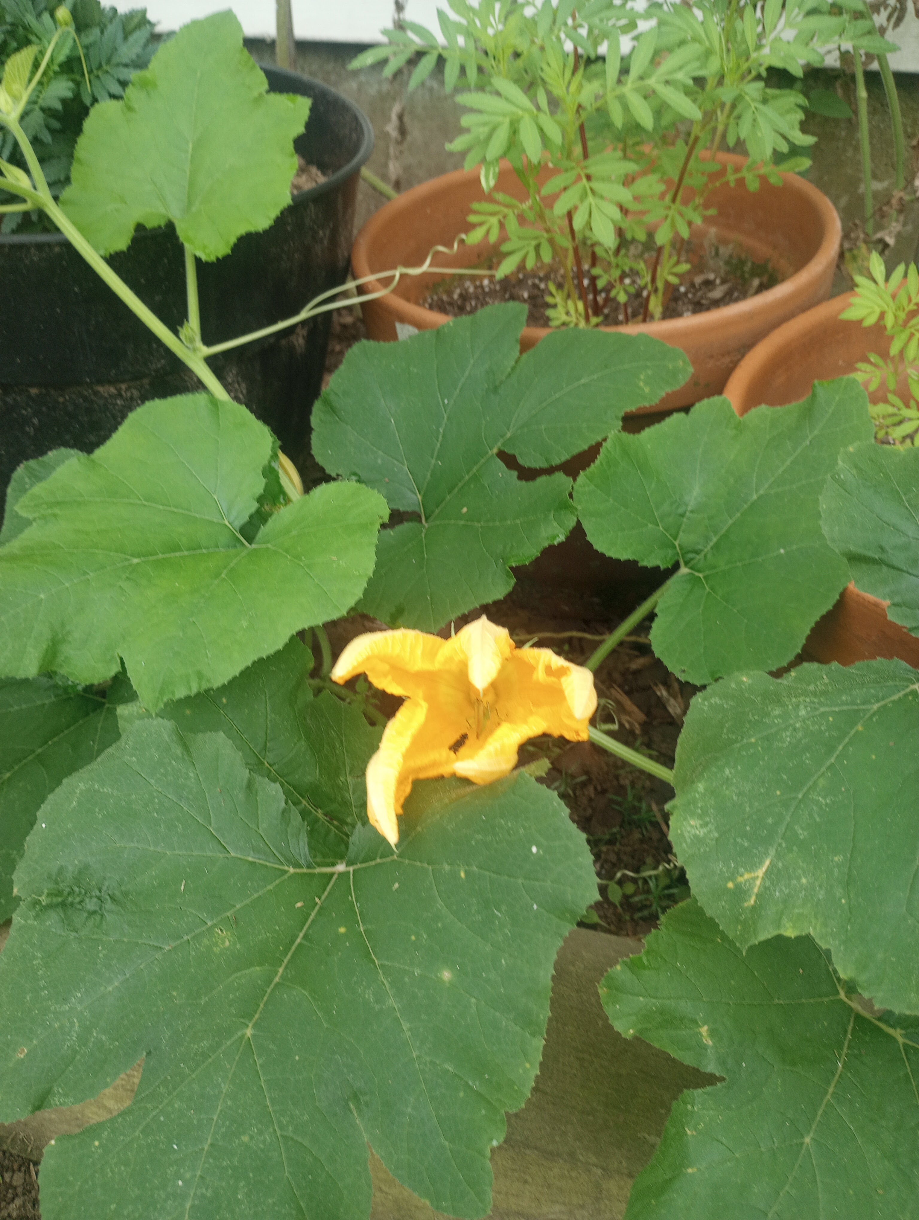 We even have a bloom, which if we are lucky, will one day become a pumpkin.