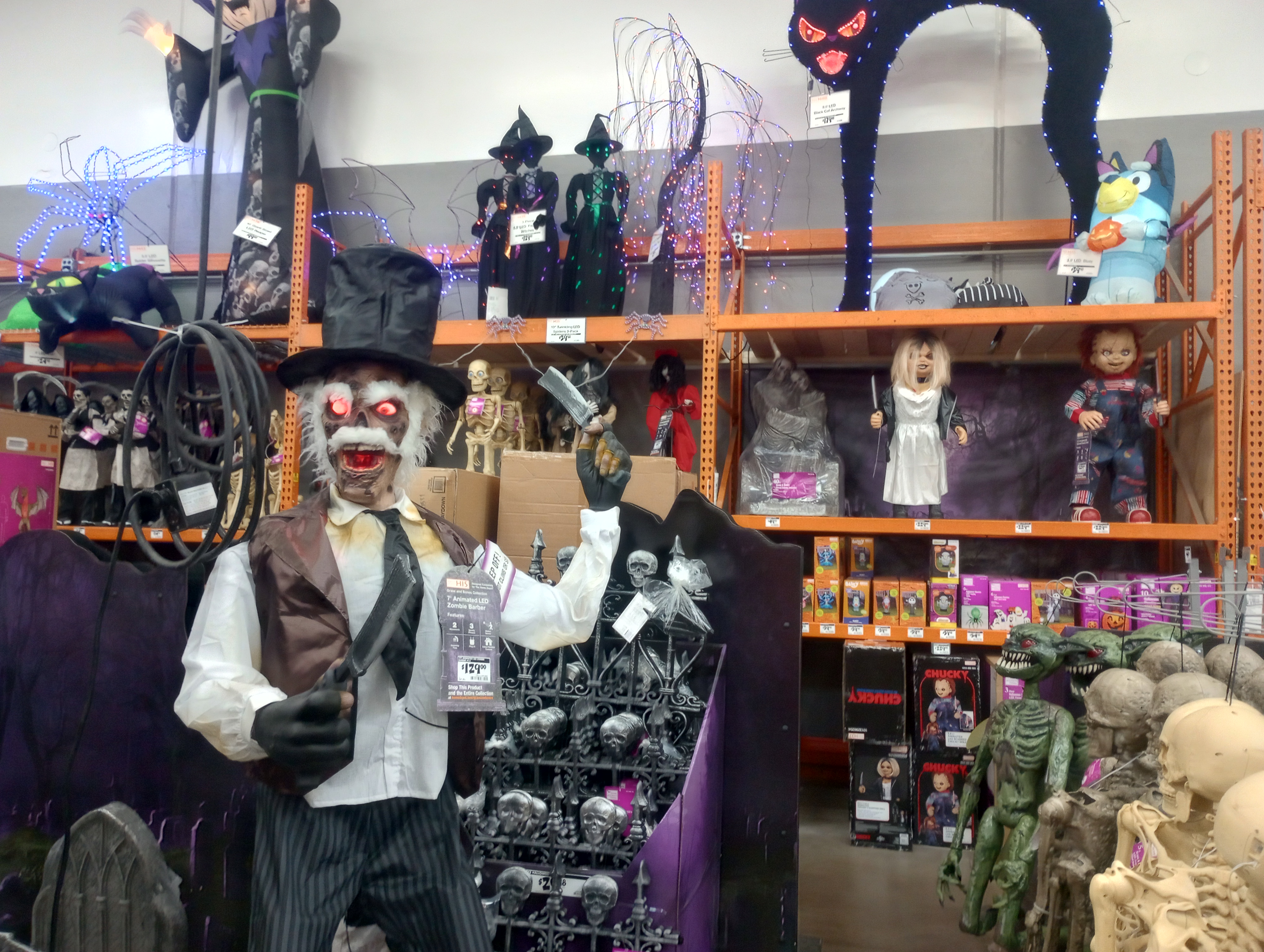 Donny and I had two wonderful days off together. On Thursday we had to run to Home Depot to get some nippers so he could cut some small trees down that were growing into the fence. We found the Halloween decor and I had a lot of fun pushing all of the buttons to make the animatronics come to life.