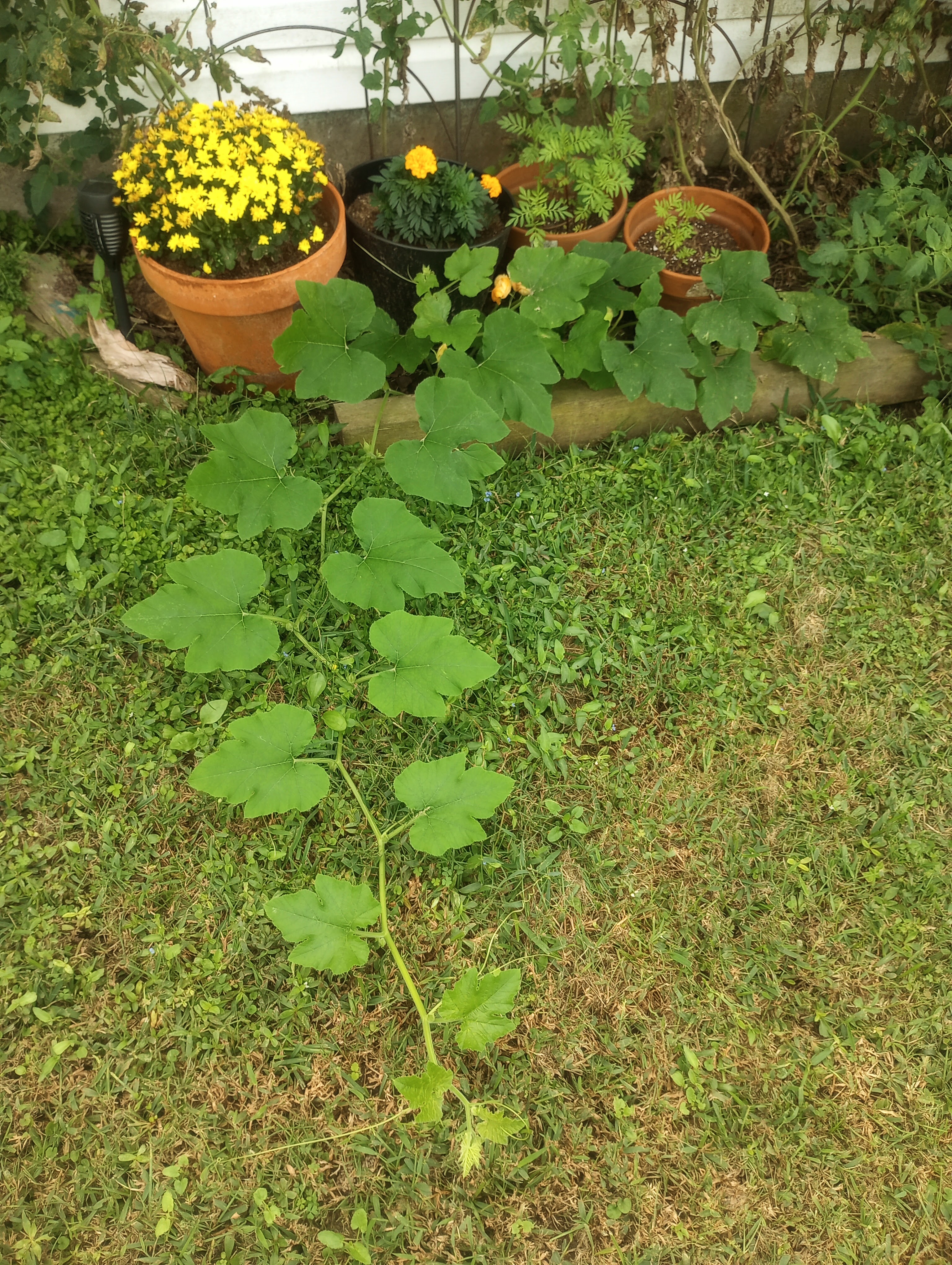 After I cleaned the kitchen I headed outside to check on the pumpkin vine.