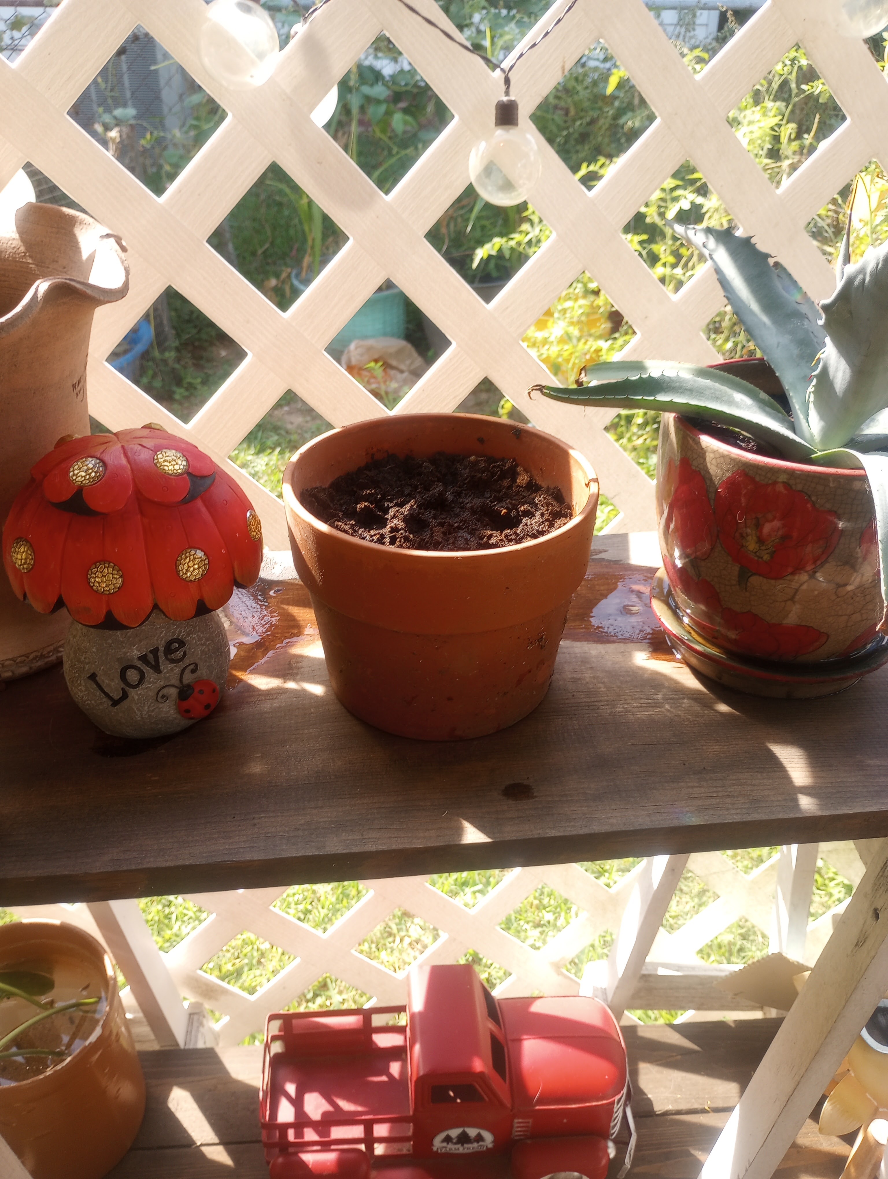 I watered the new plants that Donny planted. We are hoping they spread and get a lot taller.