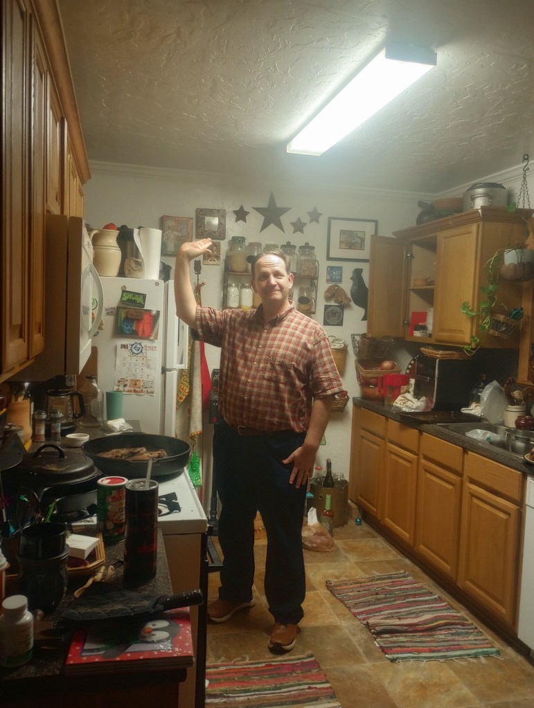 We never really have big Christmas plans because we have always had to work the day after Christmas and this year was no exception. That means we have a laid back, easy going holiday. Christmas Eve Donny made steaks. I think the cast iron was a bit too hot and it ended up smoking out the kitchen.