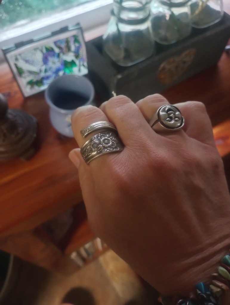My big gift was actually the spoon ring bender that I ordered (yes, Donny knew about it) for myself. That’s actually all I wanted because I cannot wait to start making spoon rings and cuffs. I have a ring I wear every day that is from the 1950’s Jubilee pattern.