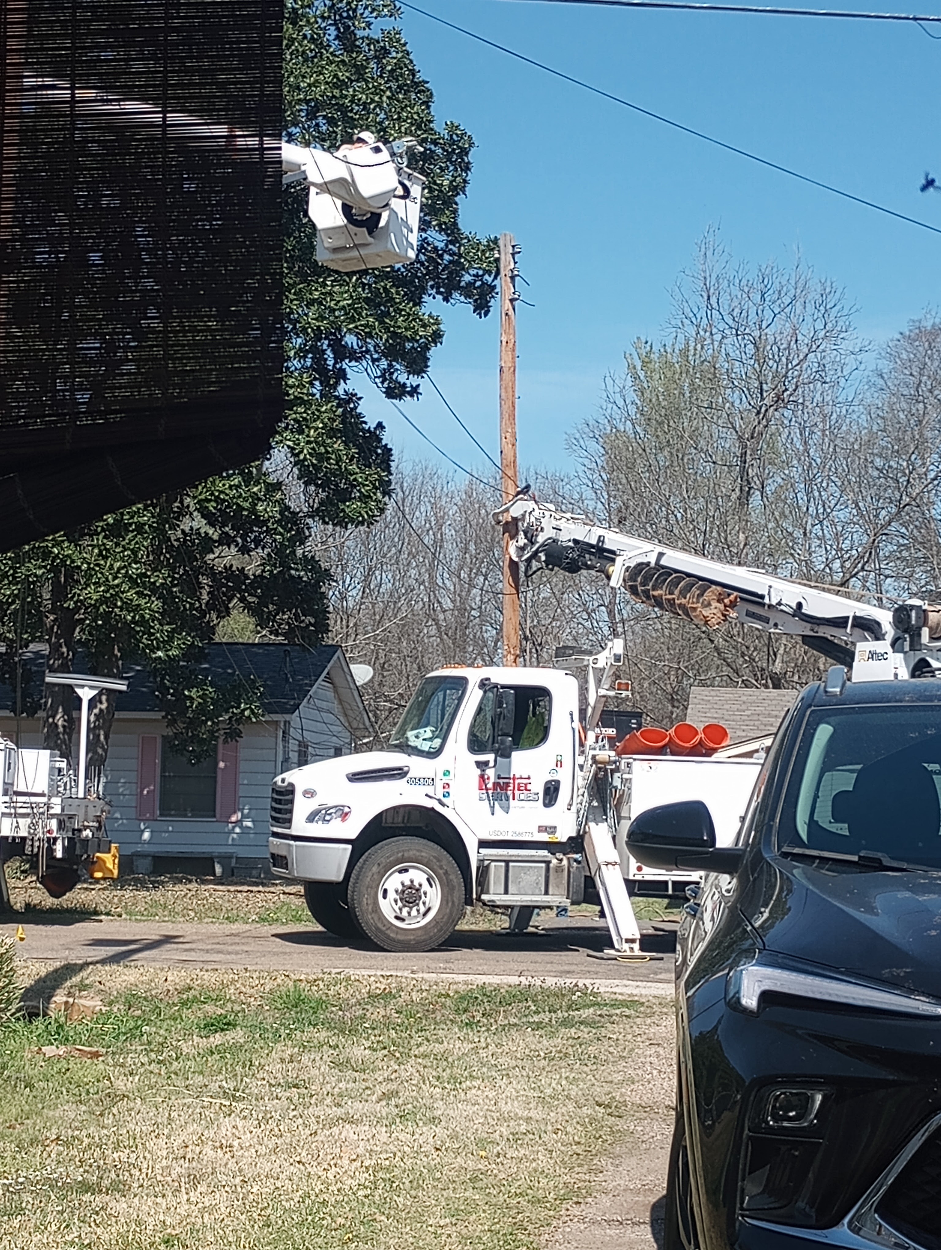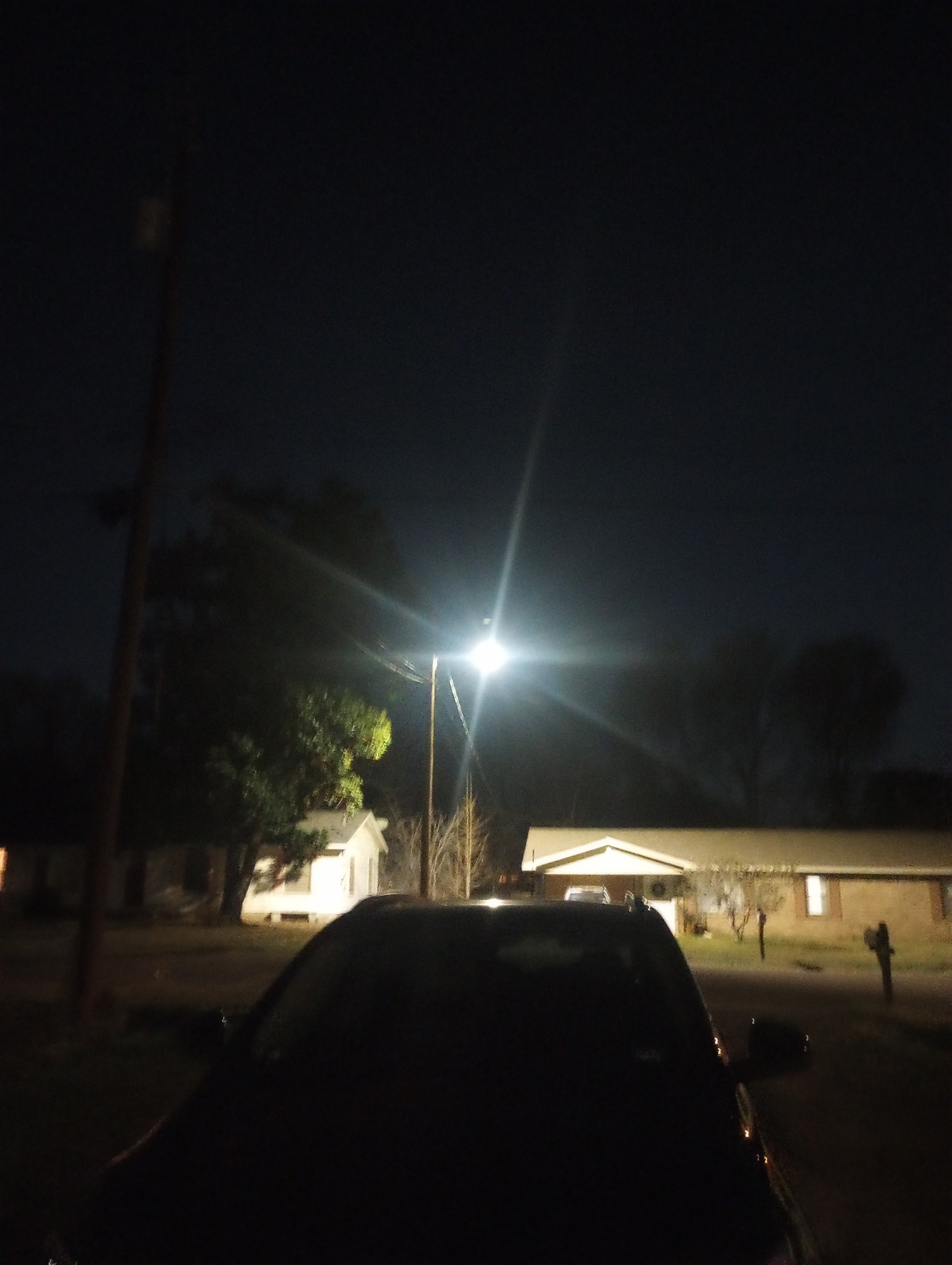 The city is putting in new electric poles and changing out the street lights. The light across the street has been burned out for a few months. At first it seemed so dark but I got used to it and actually started liking it because we could really see the stars so clearly