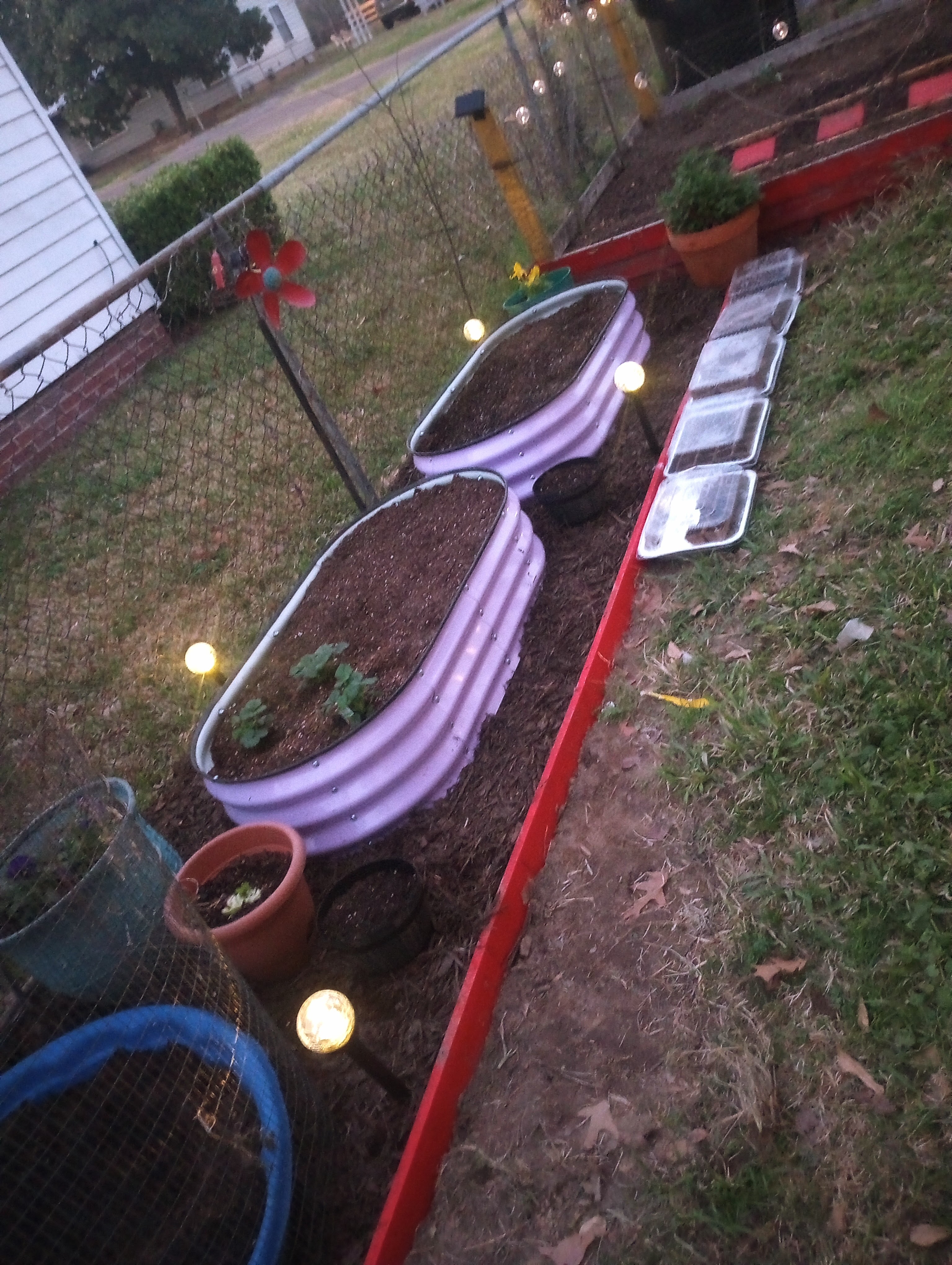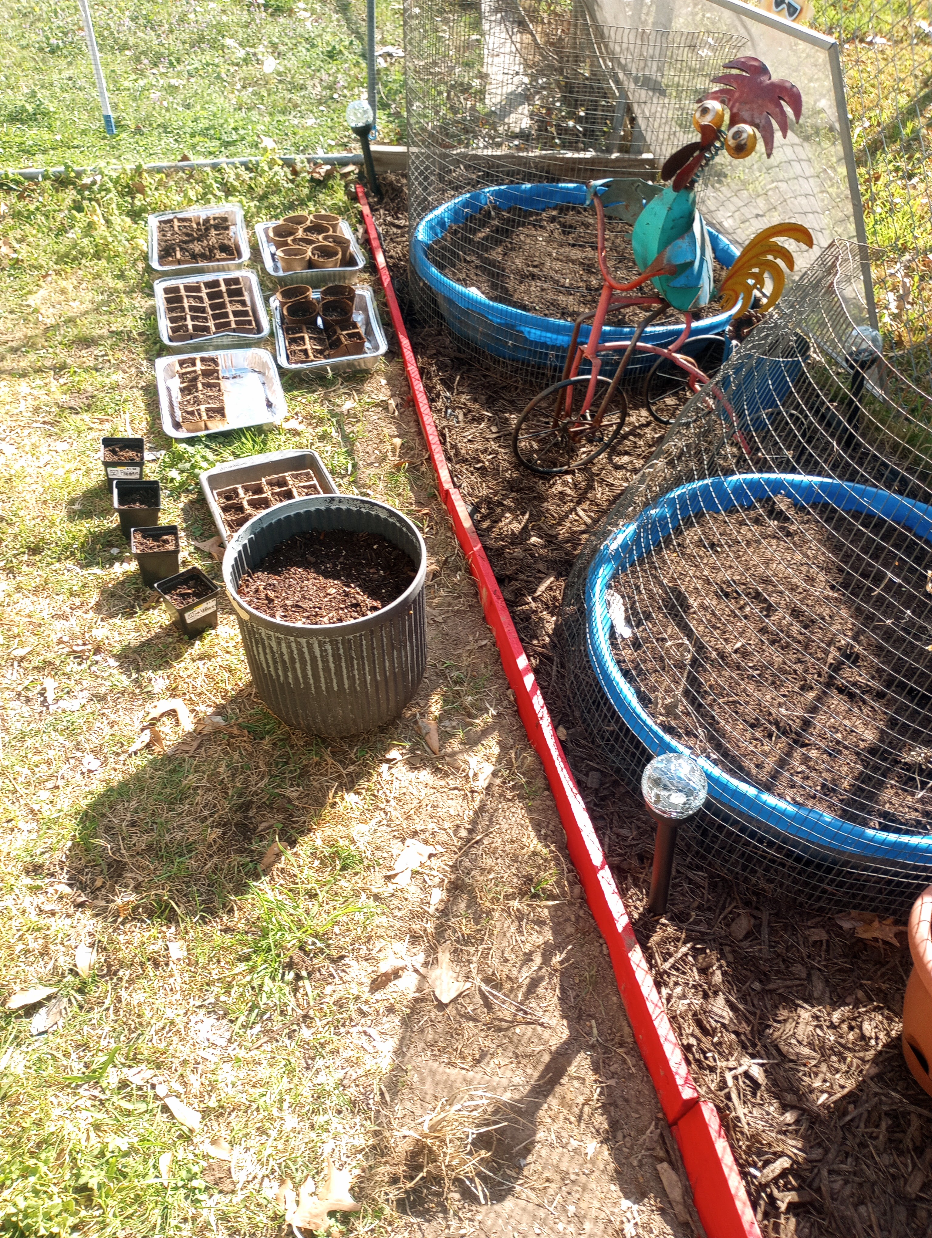 Since I have planted seeds in the raised bed where I normally keep the seed trays at night I decided to just line them up outside the border and hope no animal gets into them.