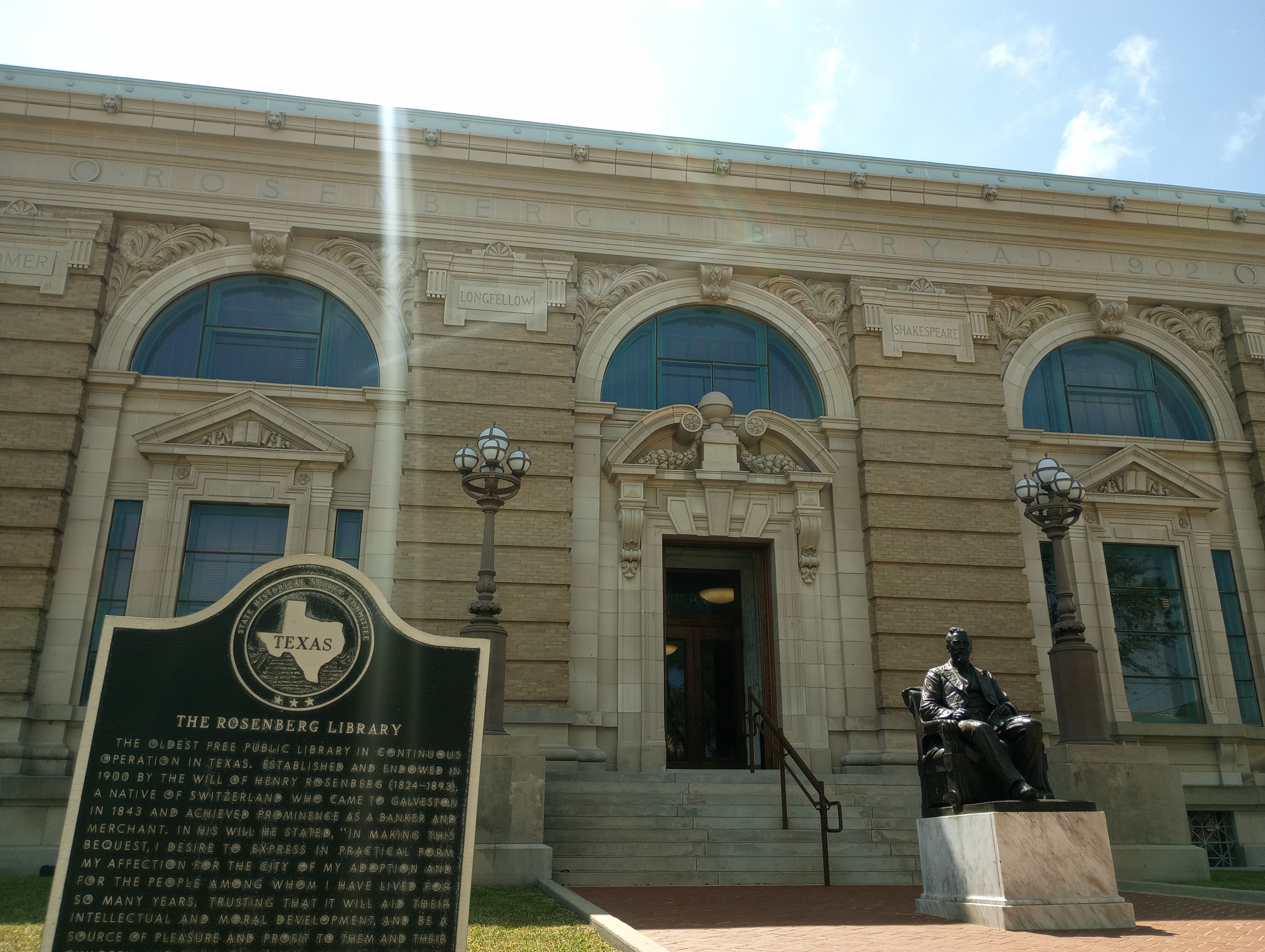 I had wanted to see the Rosenberg Library. It’s the oldest, still operating, library in Texas. The building was finished June 22, 1904.