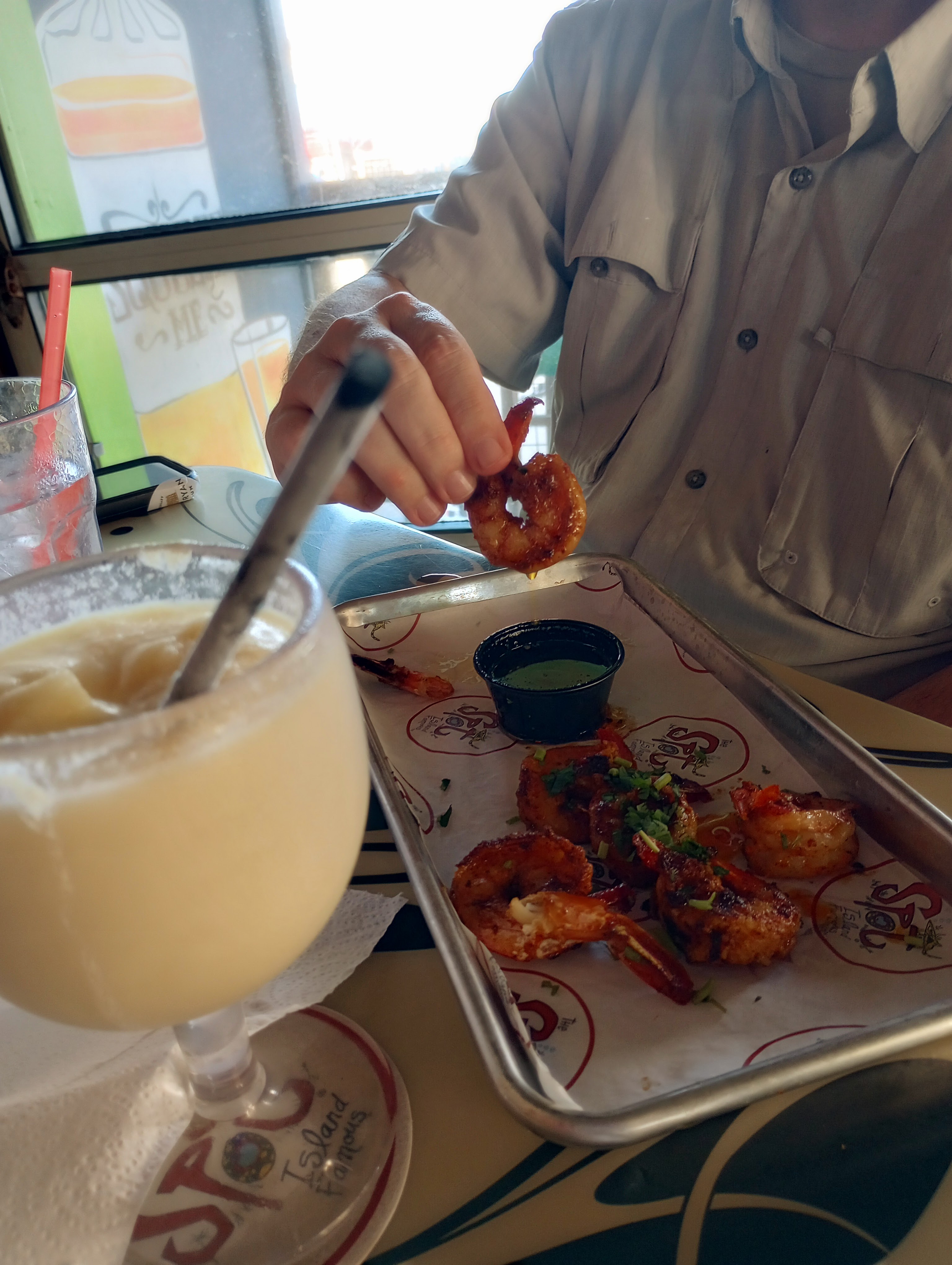 We ordered fried pickles and diablo shrimp. Both were amazing. The servers were so incredibly nice. The drink prices were so cheap. I had two Pina Coladas which makes 5 if you are keeping track. We chatted with a server that grew up in my hometown so that was fun. We ended up spending the rest of the afternoon here.