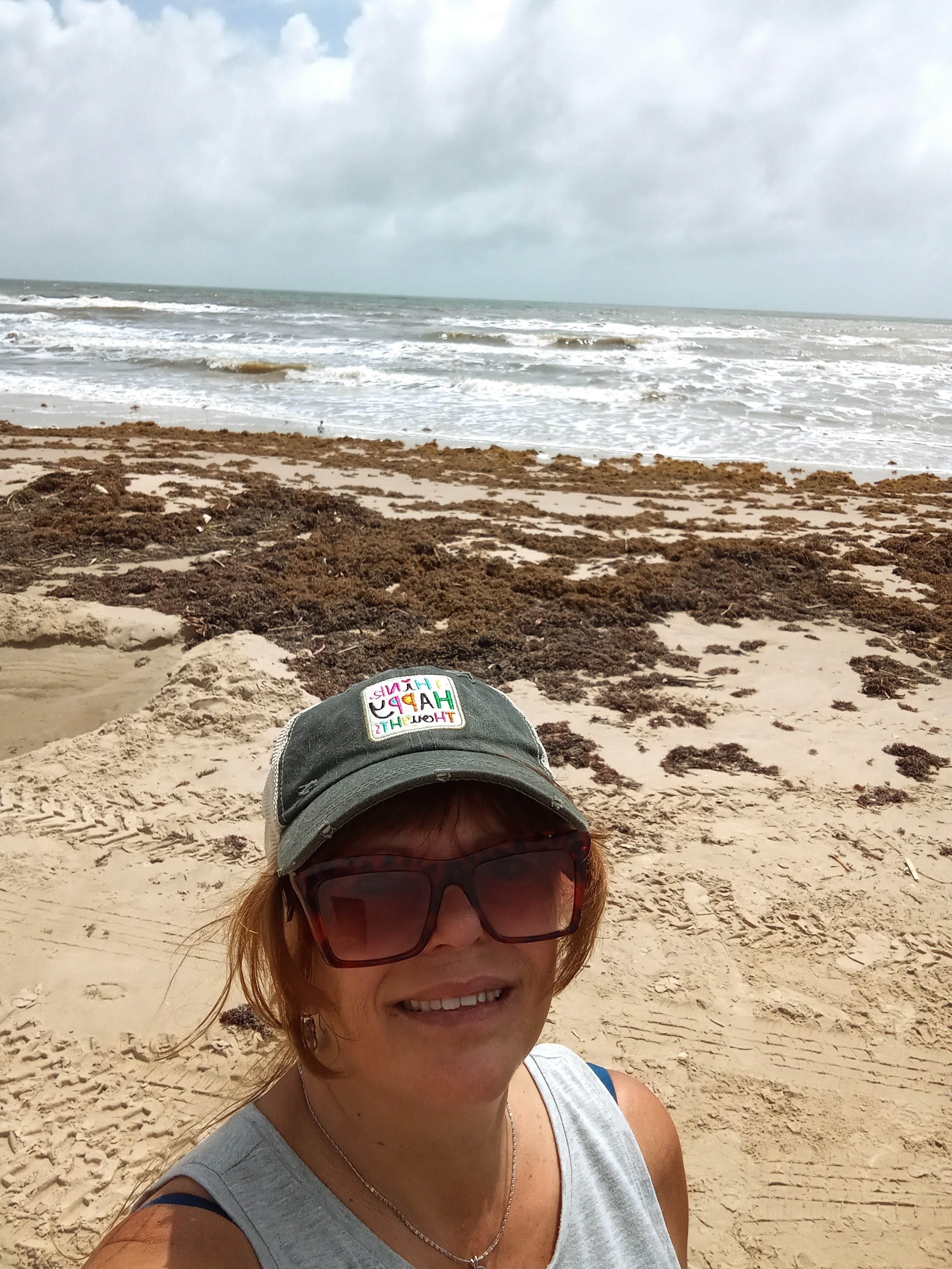 As you can see there was quite a bit of seaweed. Didn’t bother us though. I think the high tide brought a lot of it in because we had no problems walking along the shoreline.