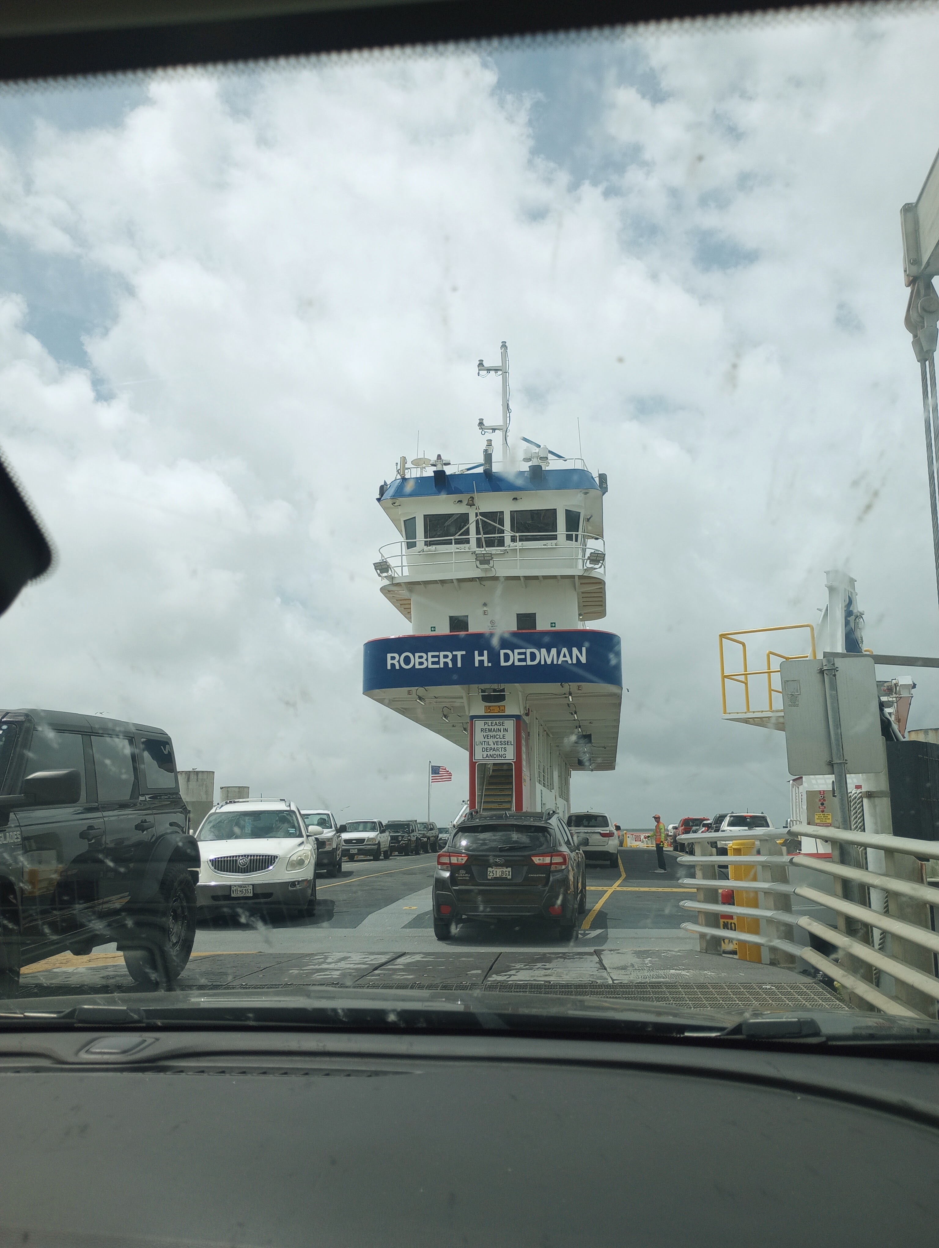 Unfortunately this was our view from the backup camera. We decided to just ride it out and about 15 minutes later we started loading. We actually did see a school of dolphins.