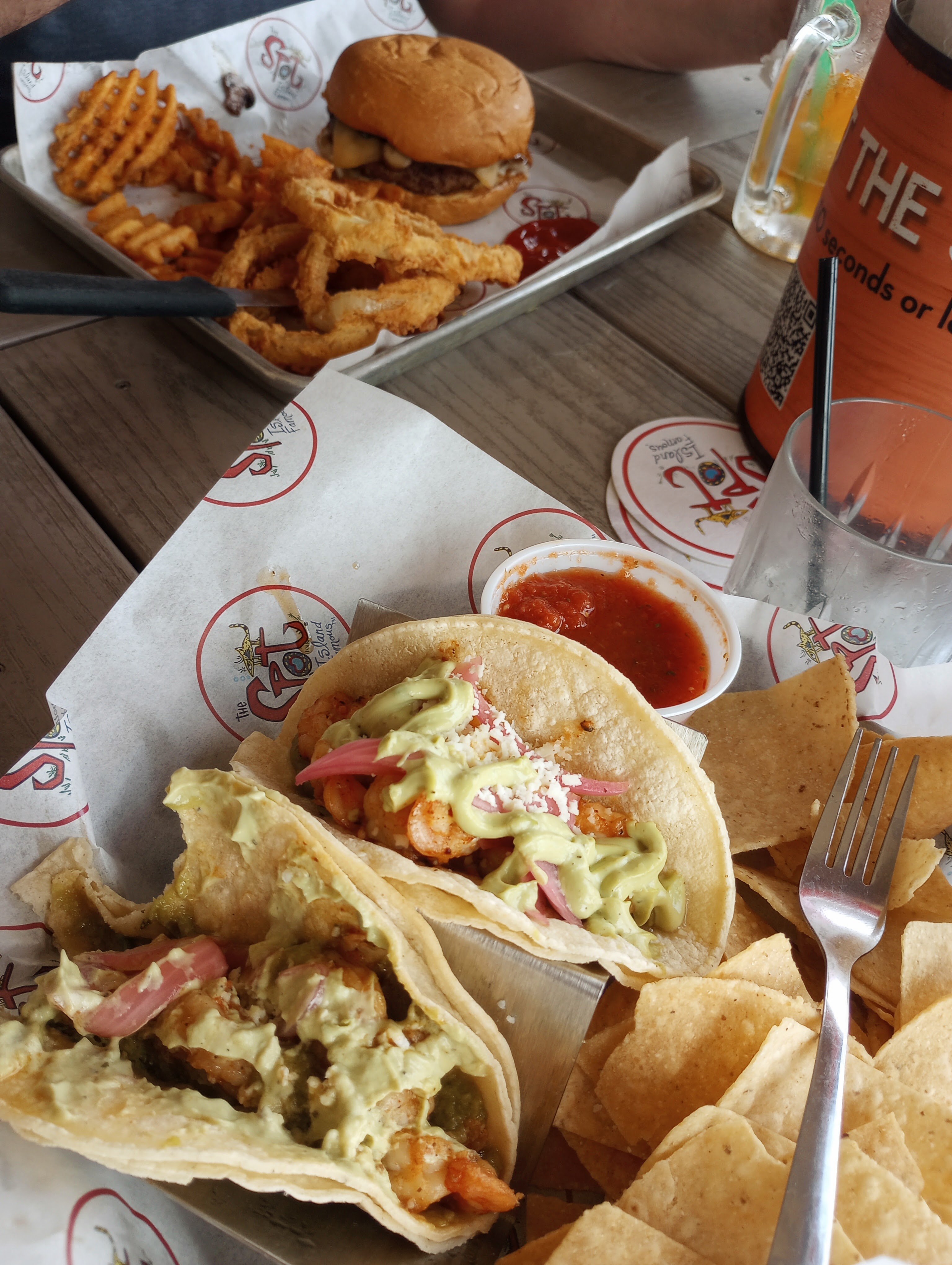Of course, The Spot. This time we chose to eat in the Tiki Hut. I ordered the shrimp diablo tacos and Donny got a burger. Both were so good! The drink of the day was a creamcicle margarita. Yes, I had two. That makes the grand total of drinks I had on the trip seven. I didn’t have anymore after that. They were quite delicious though.