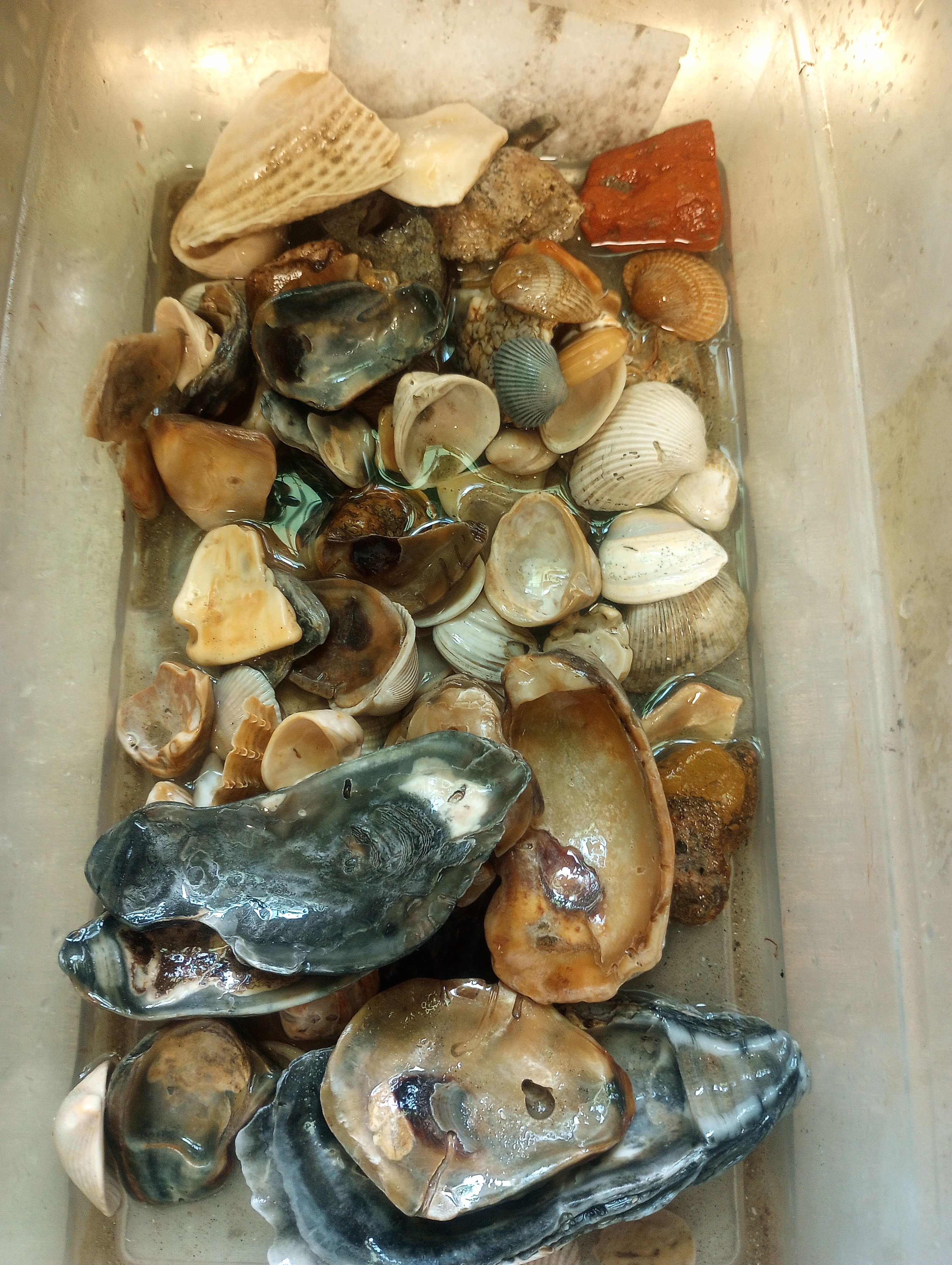 Shells that I washed and put into our smaller glass fish.