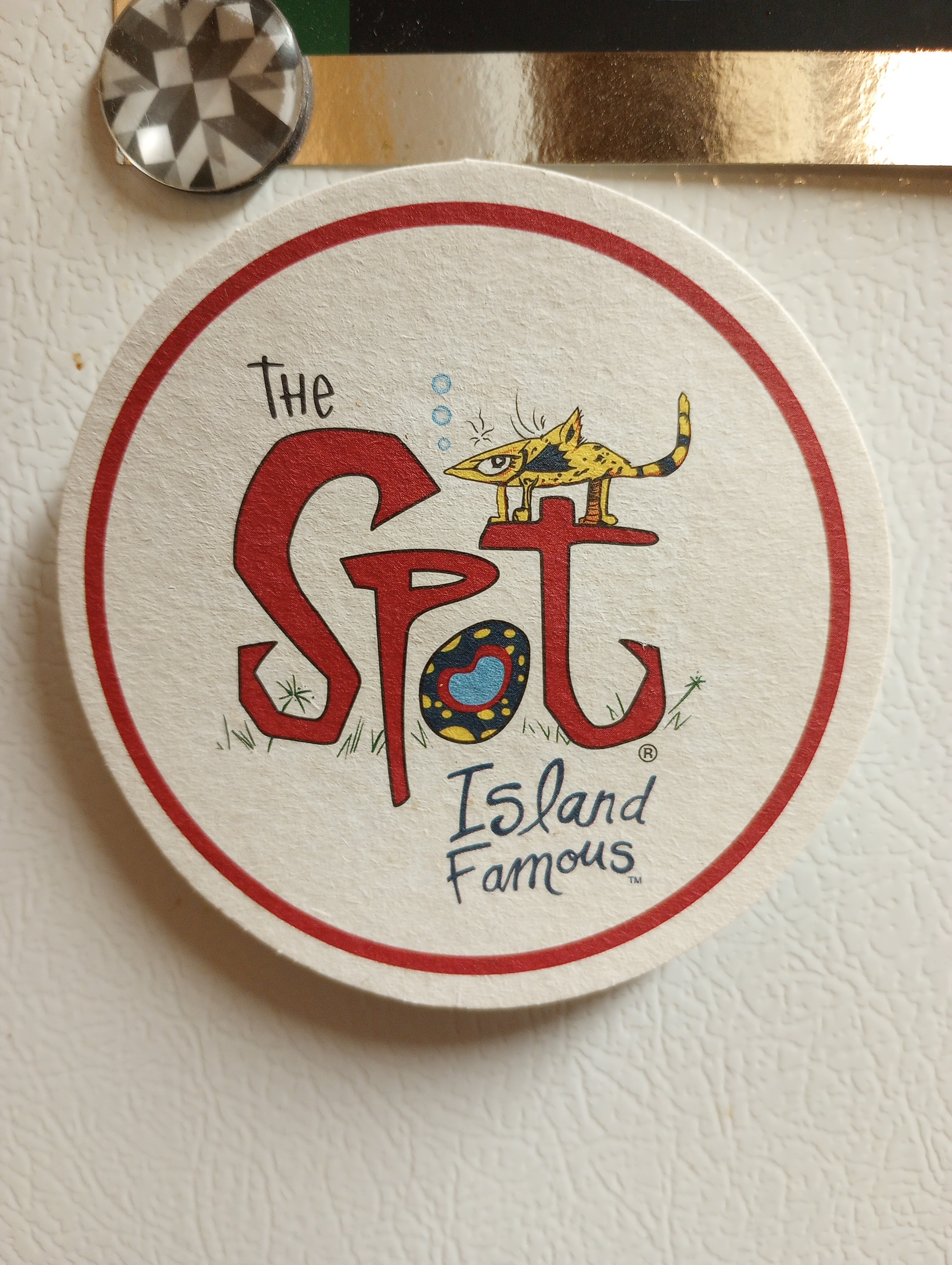 A coaster from our favorite place that I turned into a magnet.