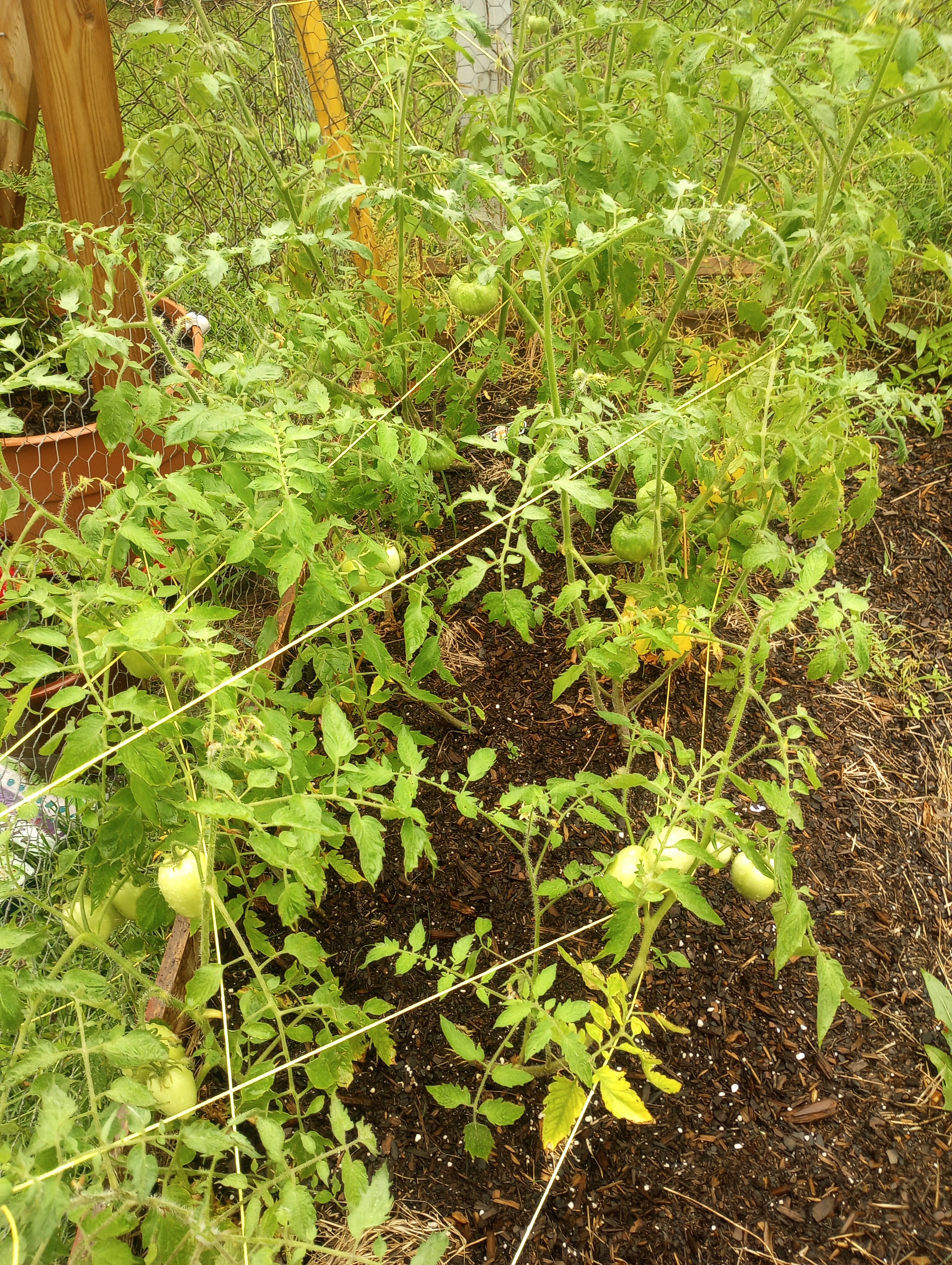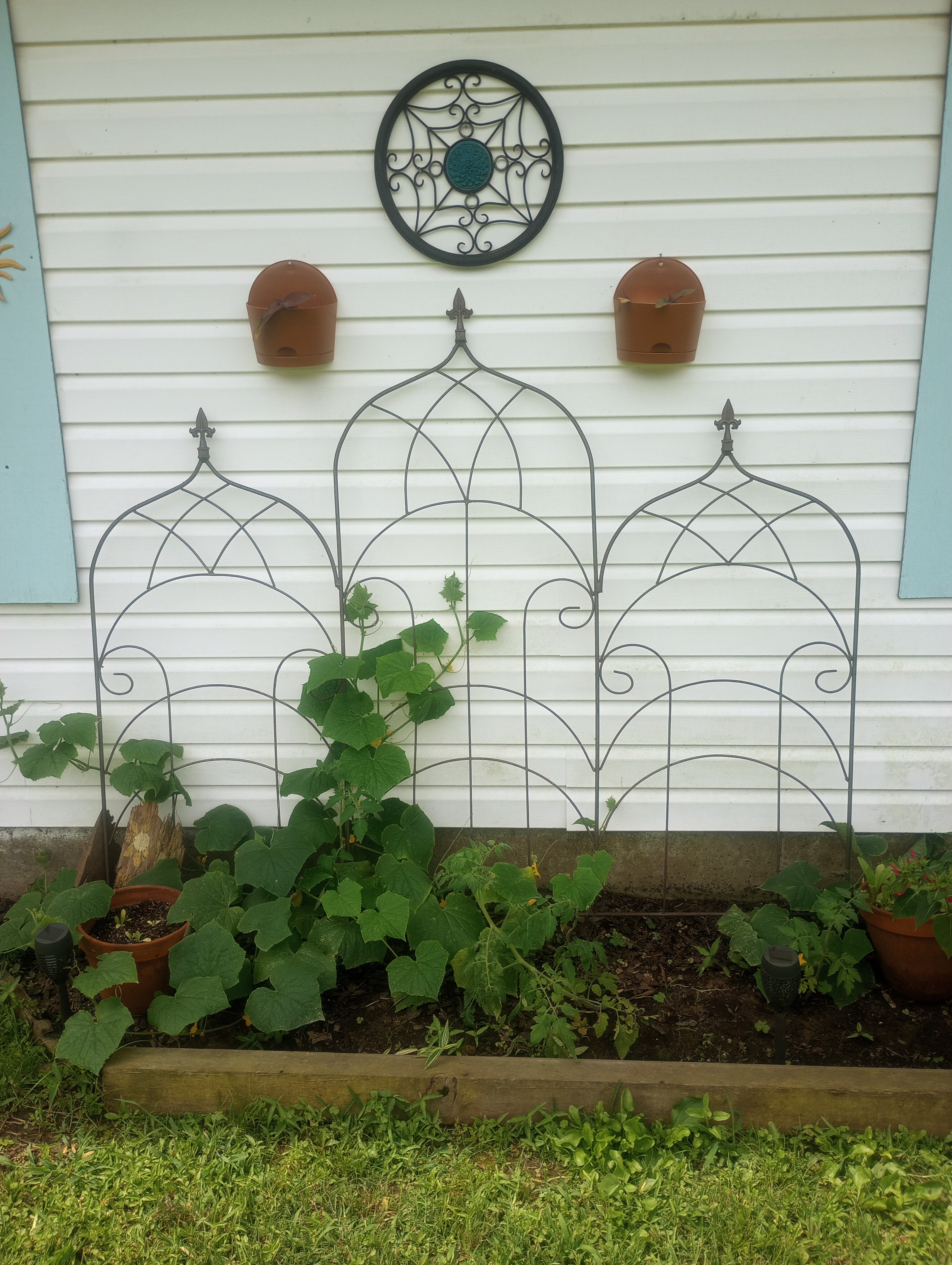 I do love my little front bed, but it doesn’t get as much sun as I would like. The cucumbers are starting to flower along with the tomato plants so that’s encouraging.