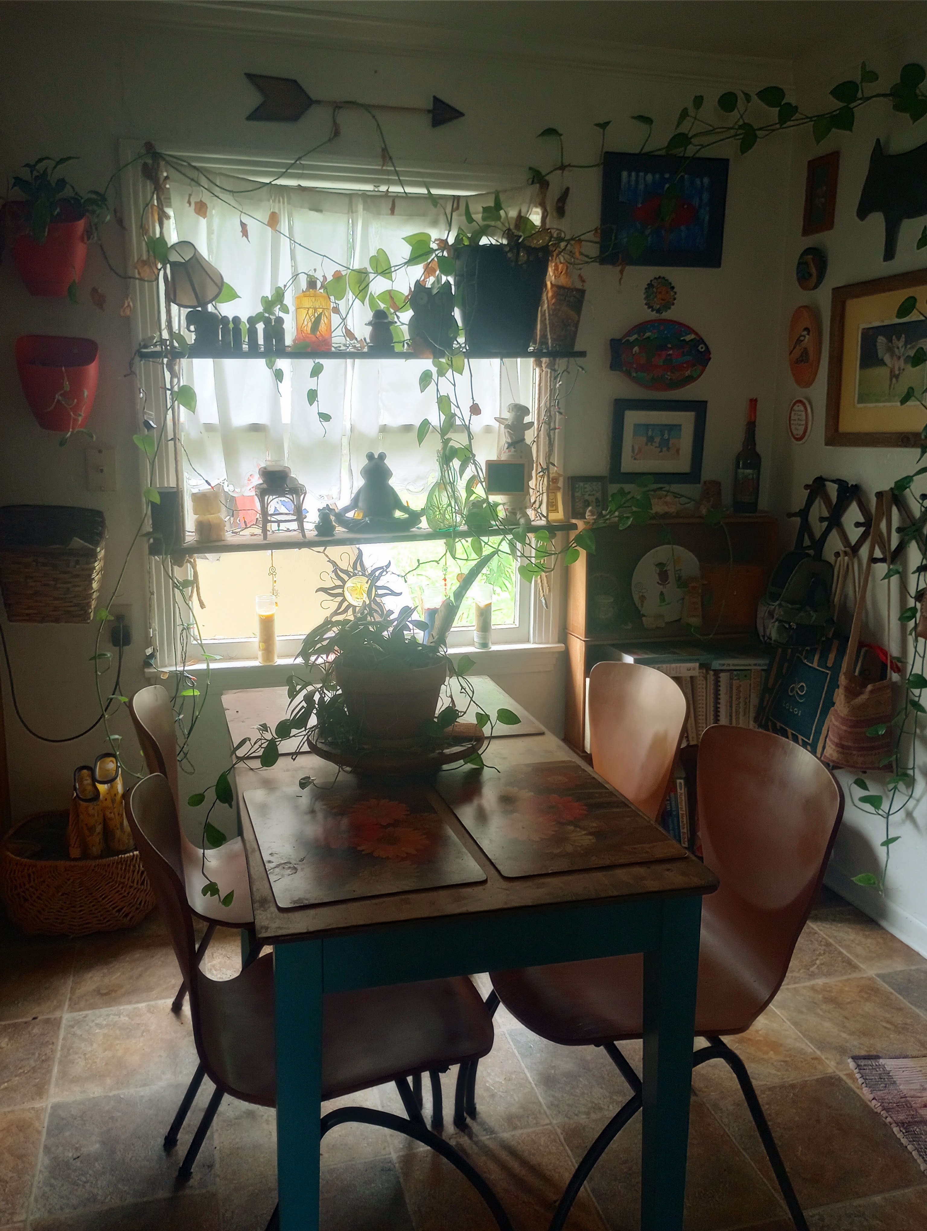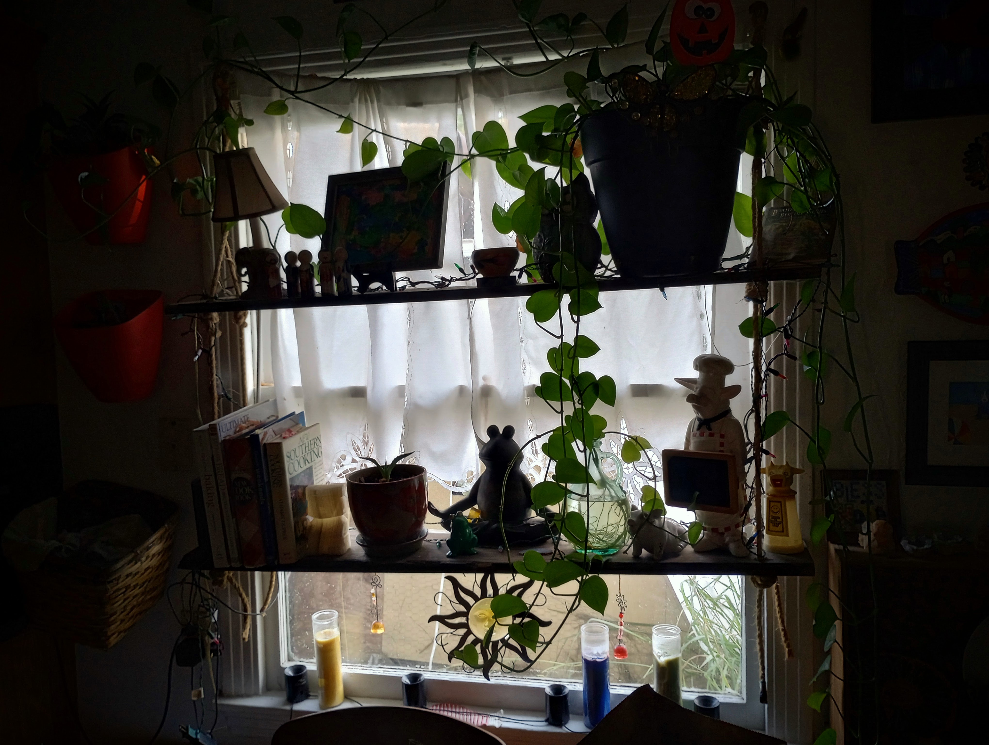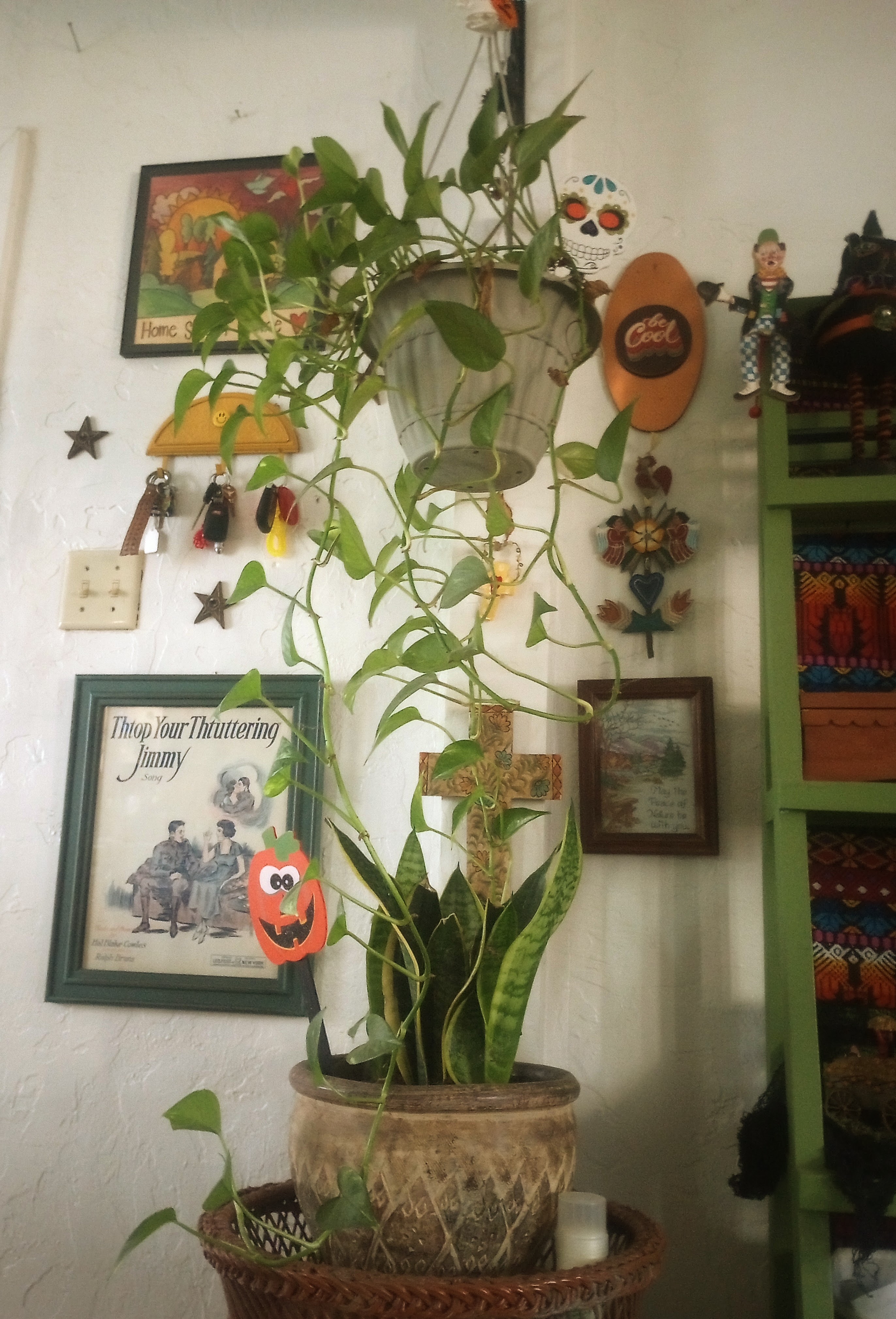 The weather has also gotten much colder so that means bringing in all of my delicate plants from the patio. It’s supposed to be near and below freezing until the 10th. Winter in our home means it’s going to get a little plant crowded. I brought in one of my shelf tables from outside so that I had a place to put them.