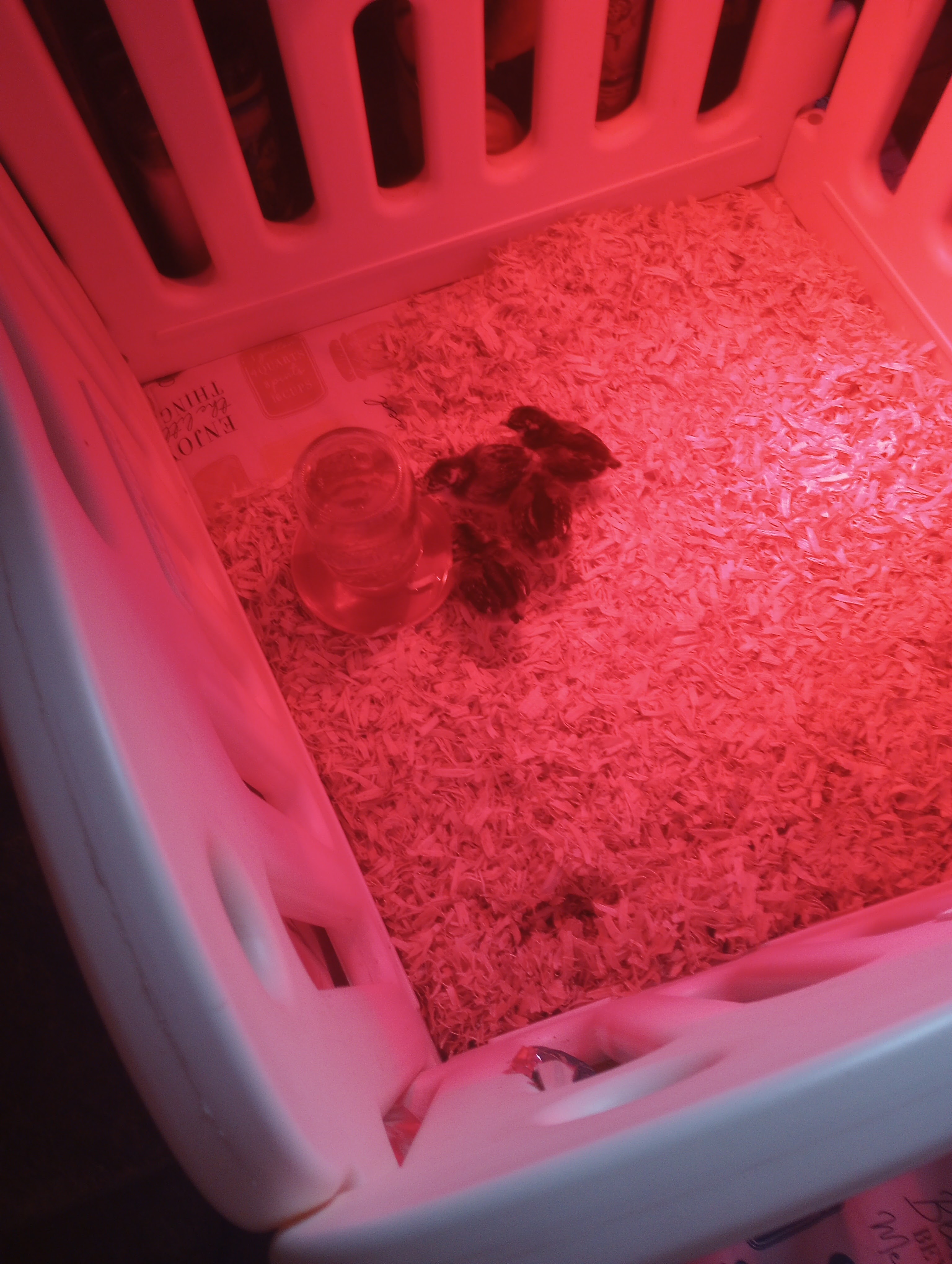 We’ve now added 4 baby chicks to our flock. Well the grown hens and homicidal rooster don’t know about them yet because they will be in our living room for 9 weeks until they are old enough to join them.