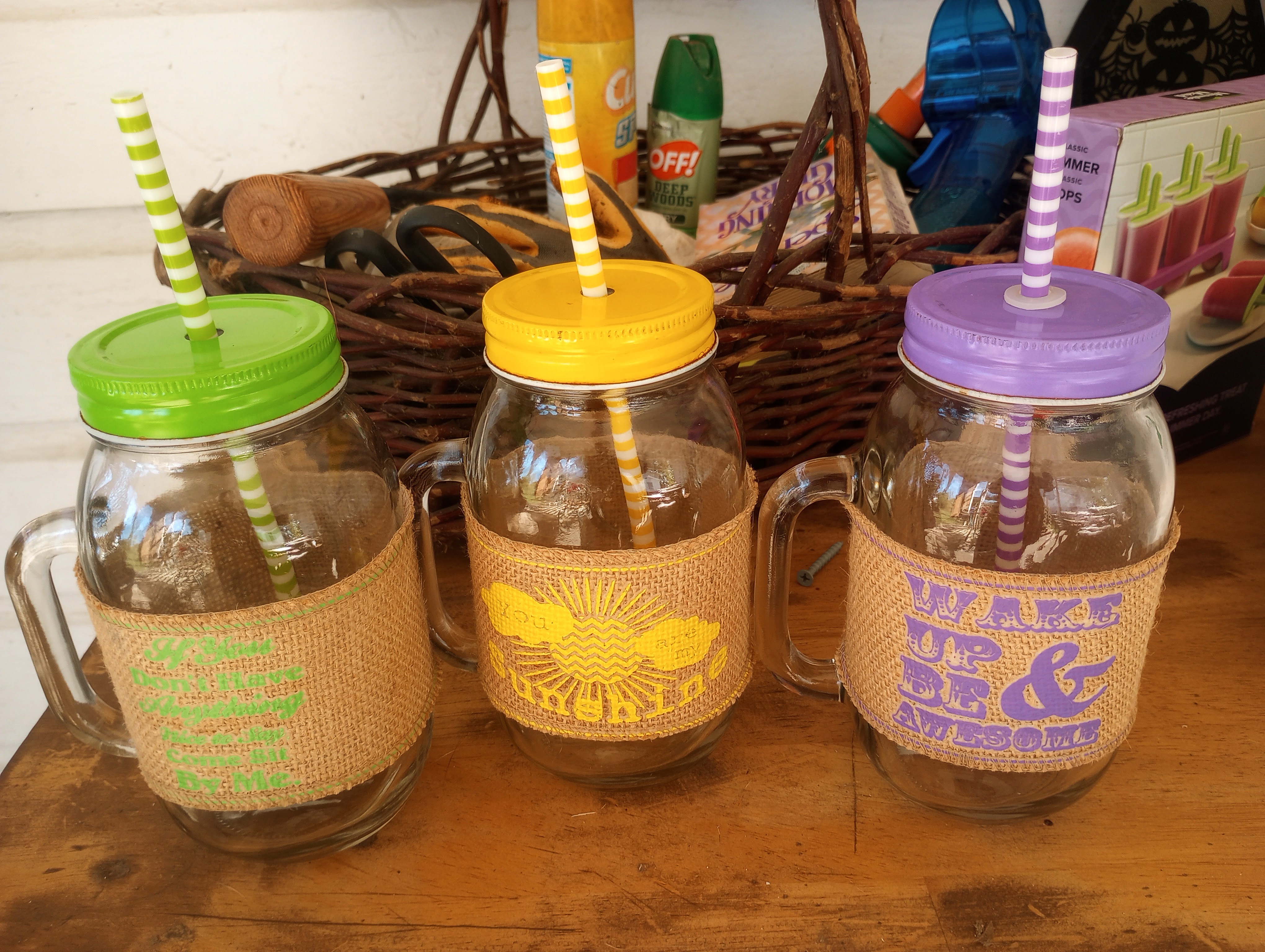 But these glass jar cups were so cute and Hannah can drink her iced coffee out of them.