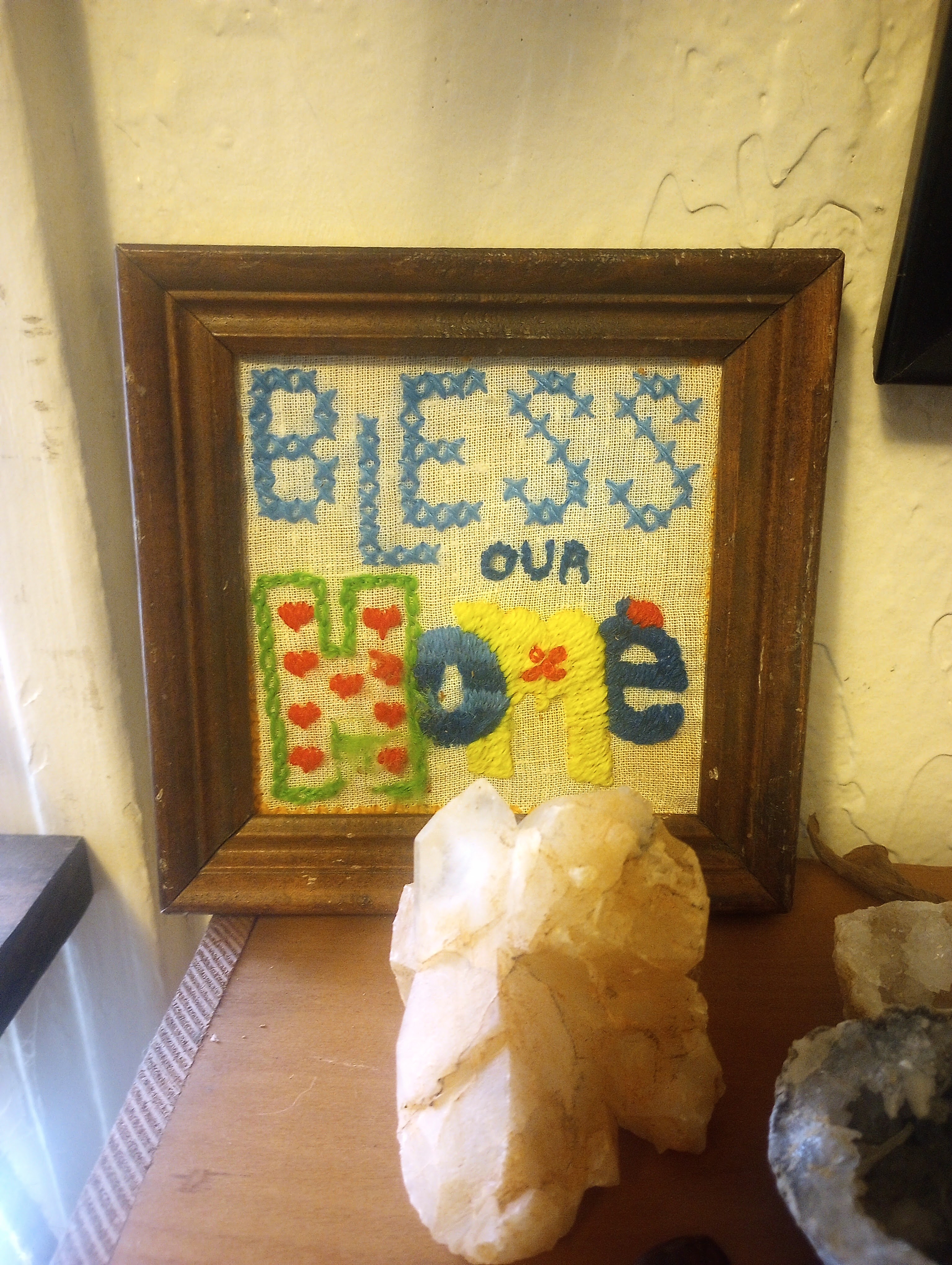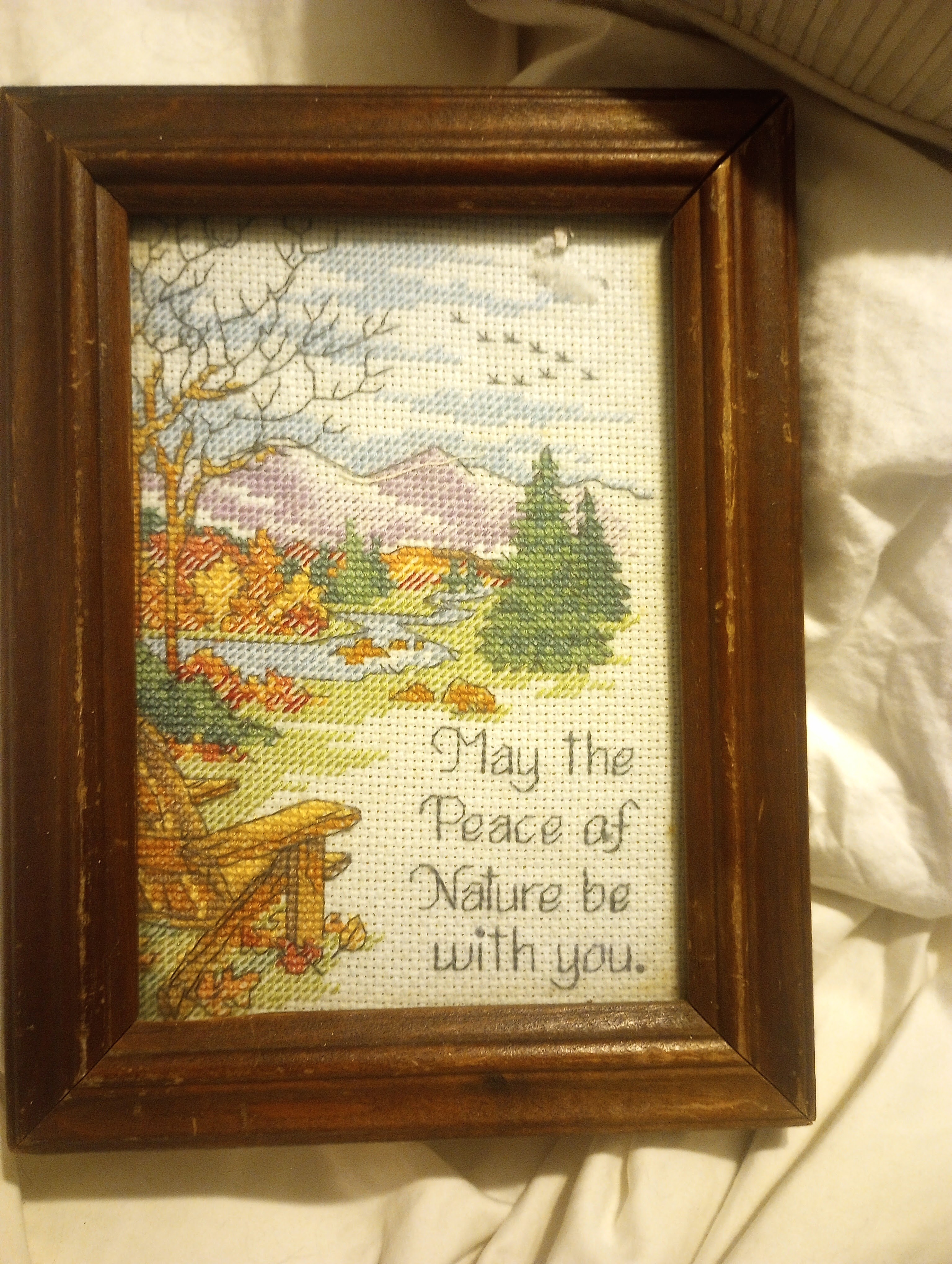 I always have to look through the artwork to see if there is something handmade. Discarded handmade art just makes me sad, so I was very happy when I found this sweet cross stitch for only $1.