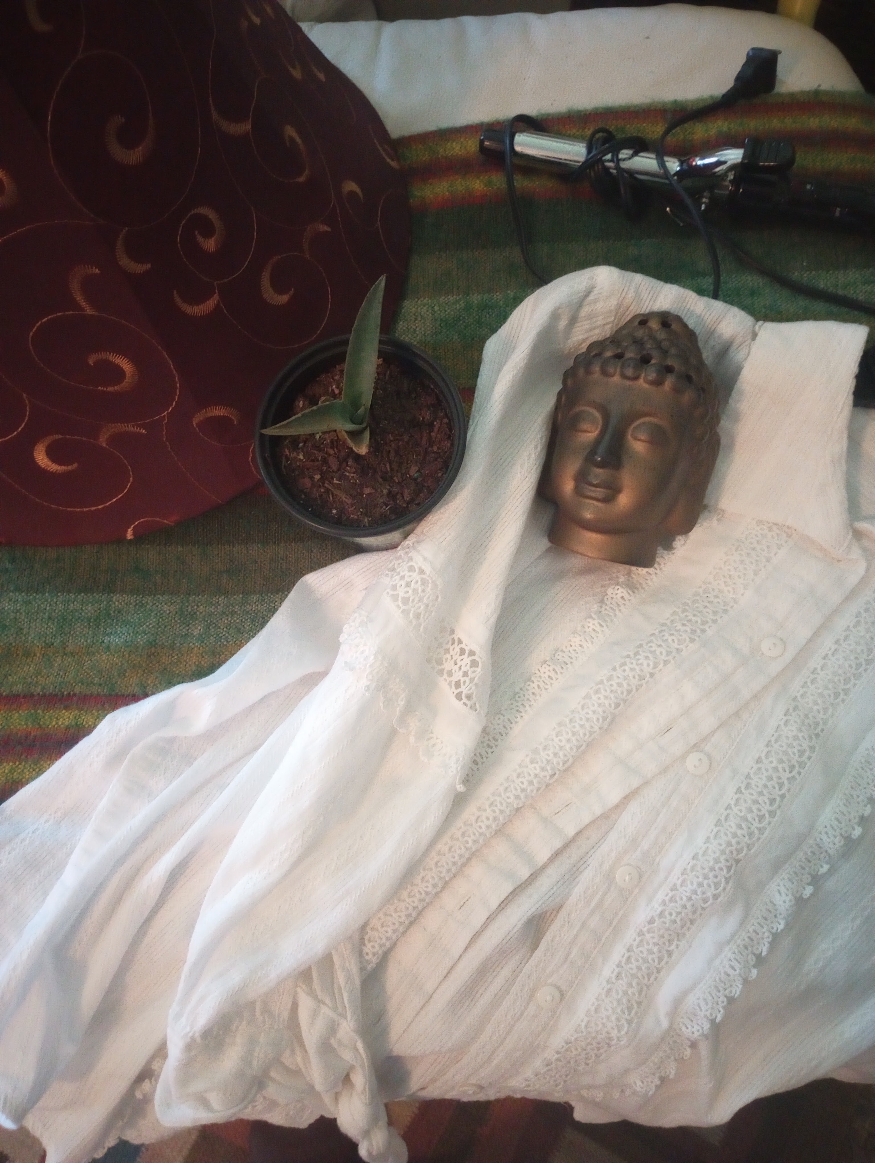 The Buddha head works well next to the stereo with my other brass objects.