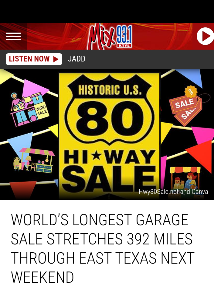 For more than 25 years there has been a 392 mile garage sale than runs down old Hwy 80 from Texas to Georgia. People bring their trailers and just set up shop in parking lots and on the side of the road.