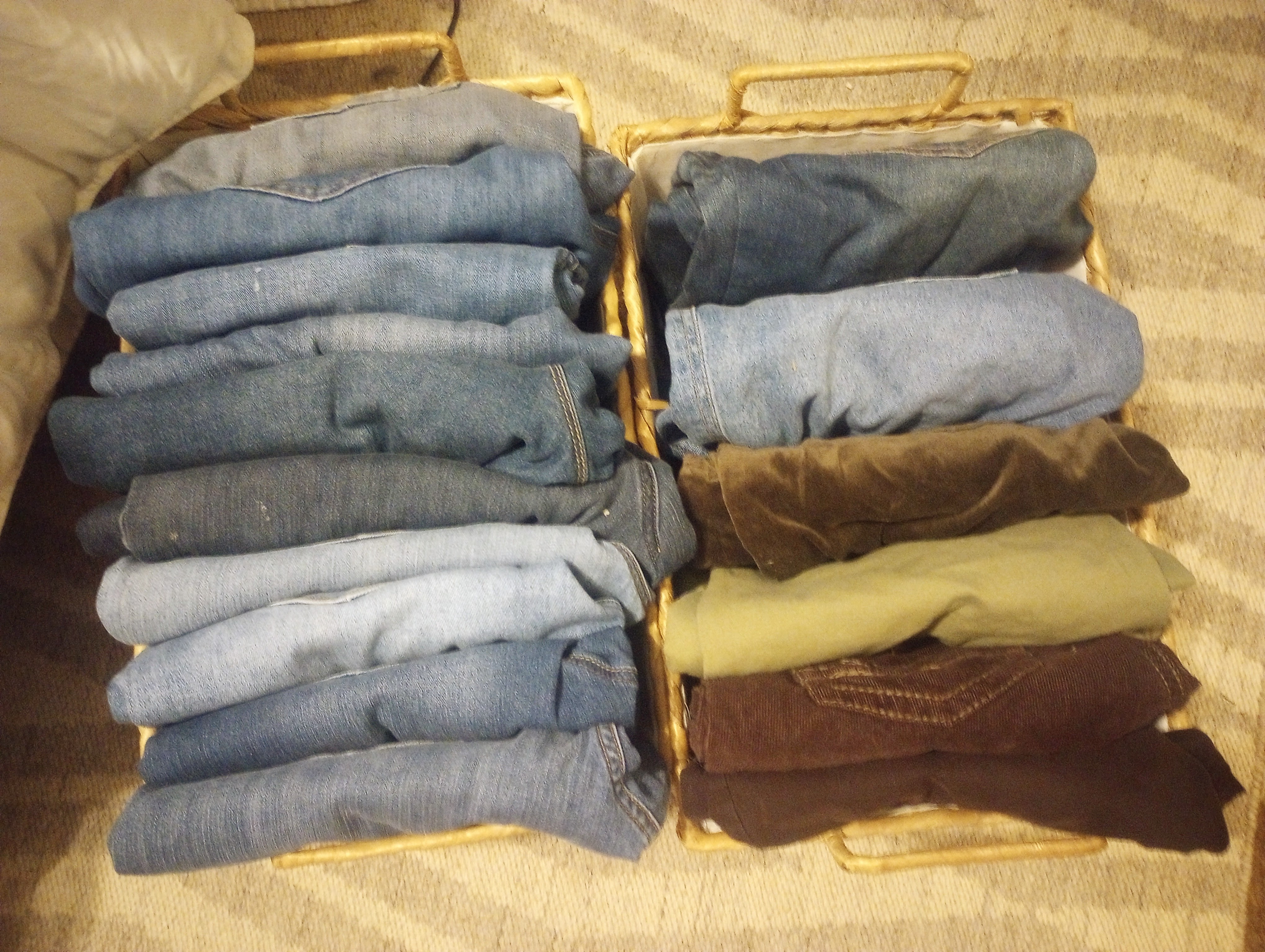 I love jeans. I added some brown cords and my olive velvet pants. I think these will definitely get me through the winter months.