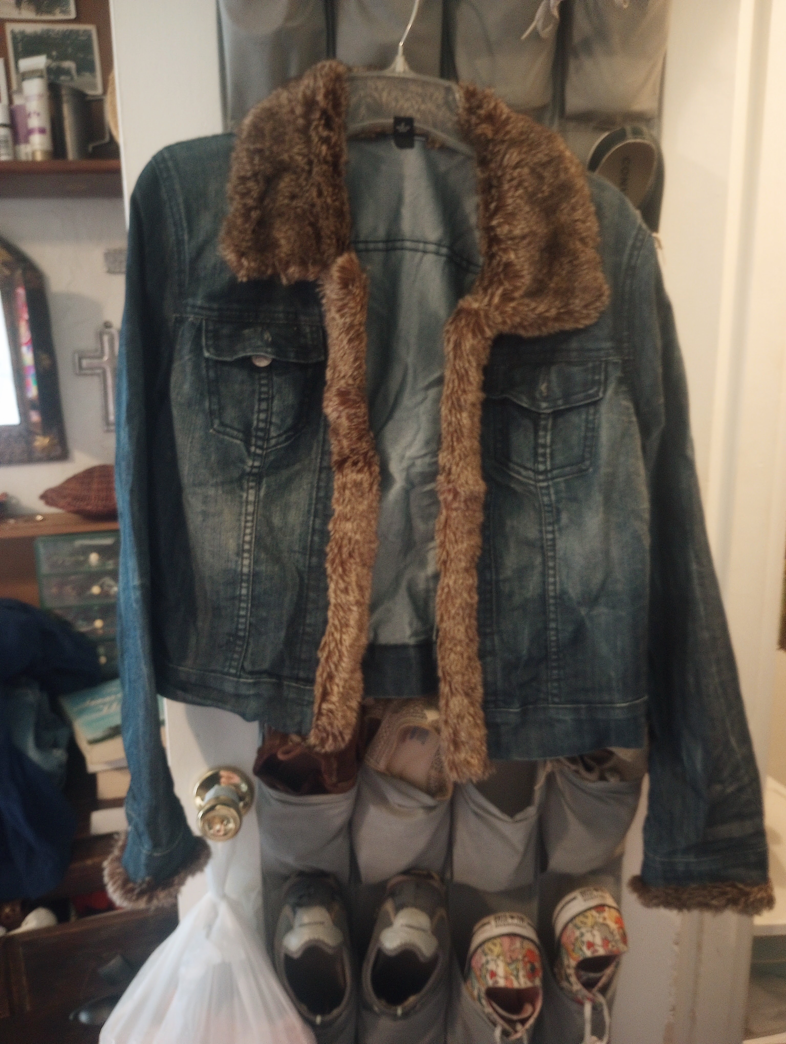 I love this denim jacket. I’m keeping my down coat in the storage bag until it gets a lot colder. There’s no need for it to take up precious space.